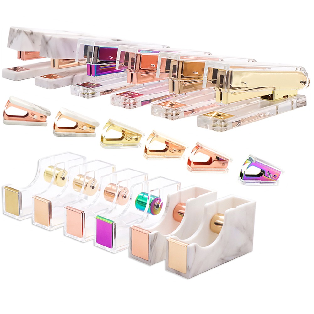 Clear Acrylic Marble Print Stapler Staples Remover Tape Dispenser Holder Set Office Desk Executive Stationery Kit