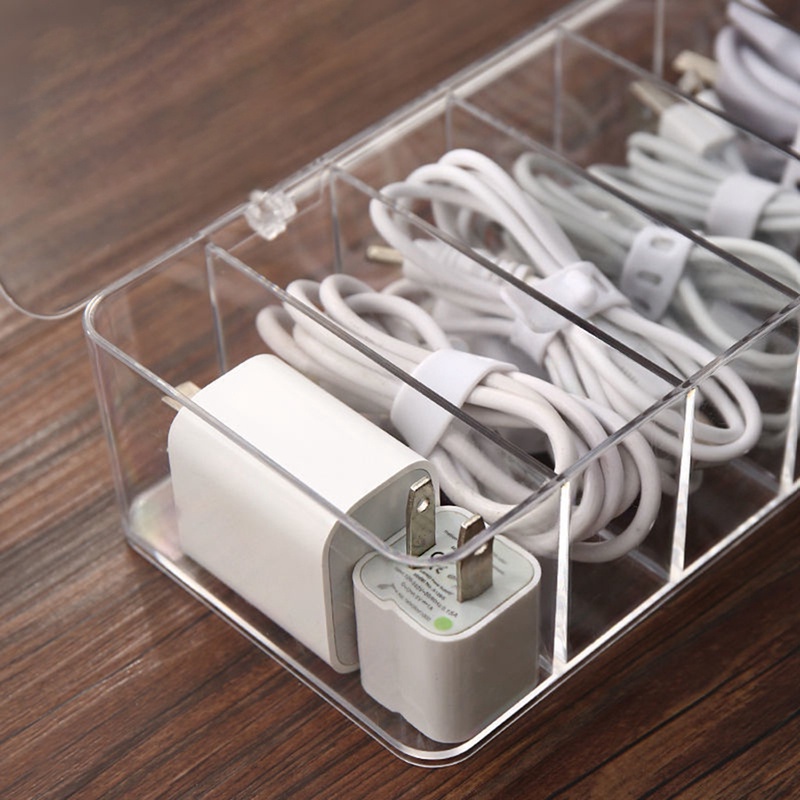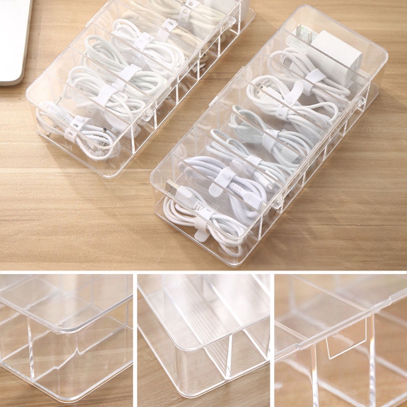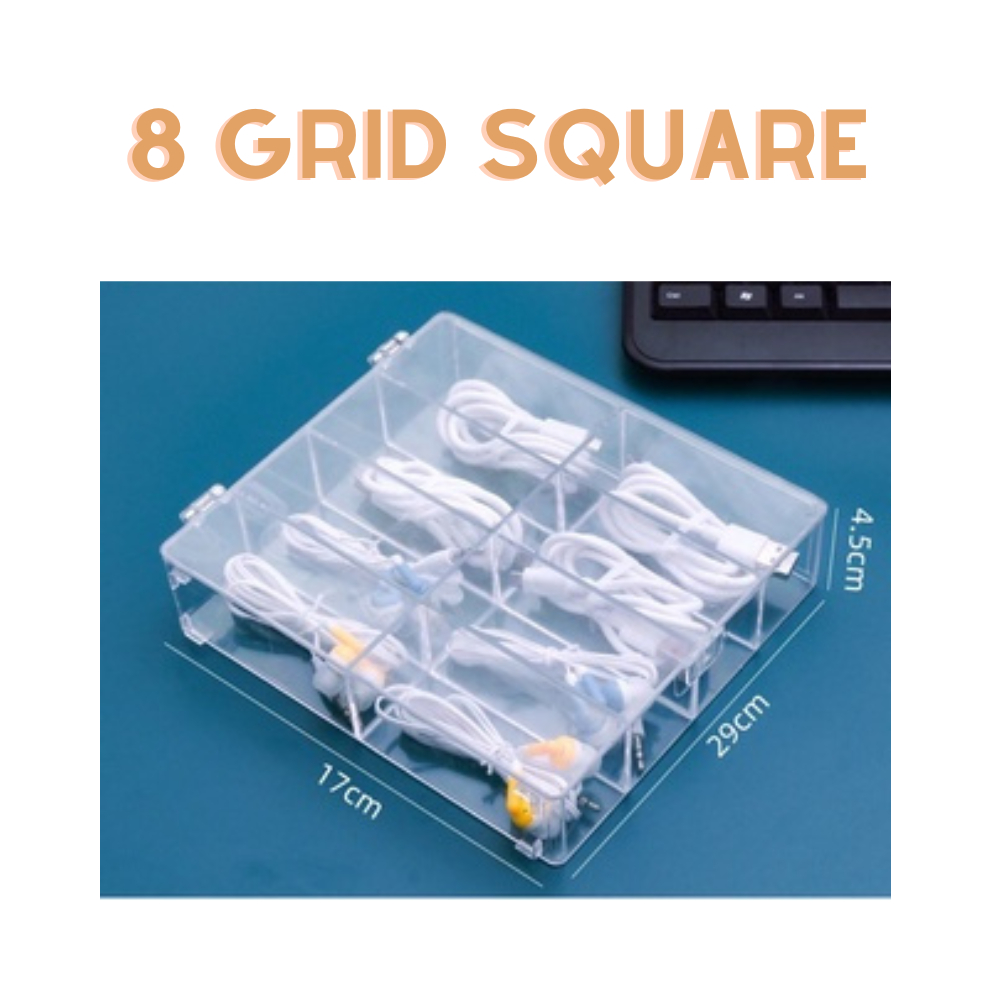Clear Acrylic Multi - Grid Data Line Storage Box With Cover
