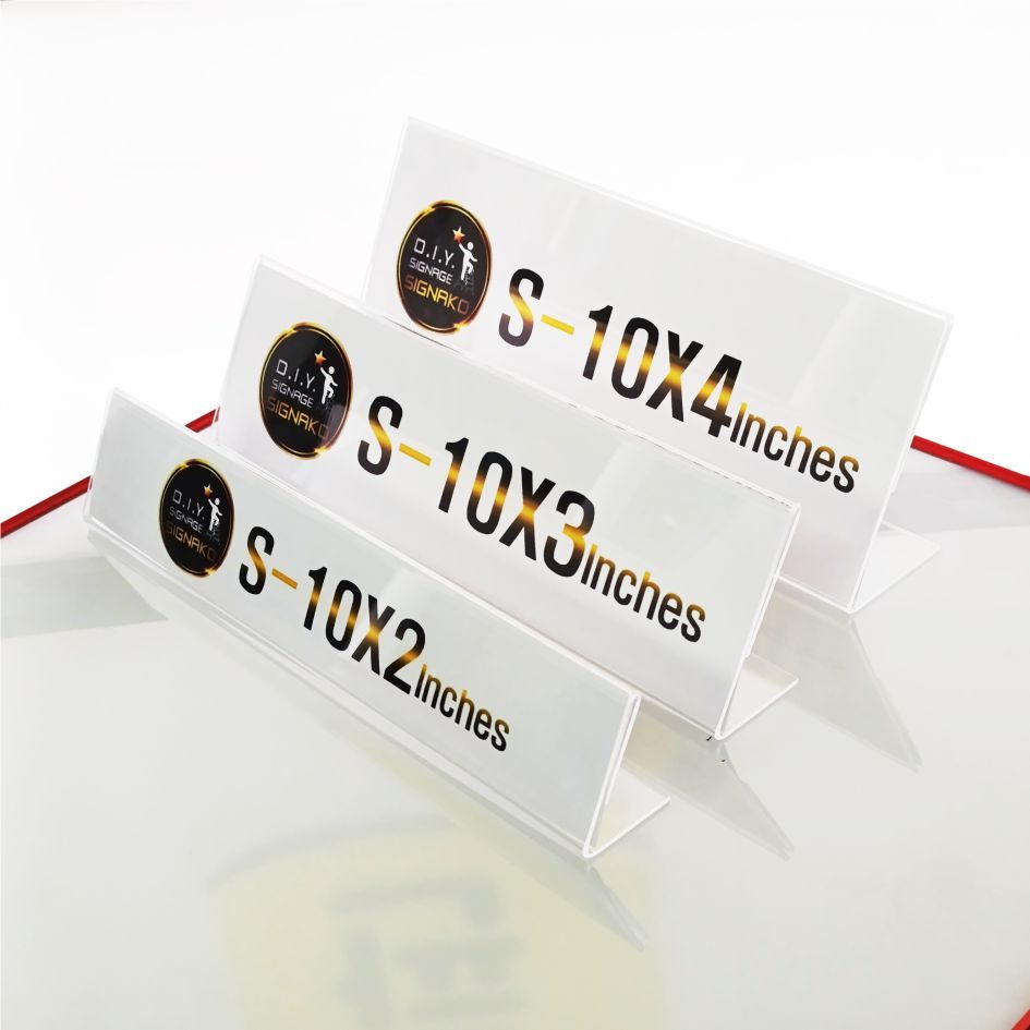 Clear Acrylic Single Sided Stand / SLANT Table Name Sign Holder Landscape Desk Name Plate Display L