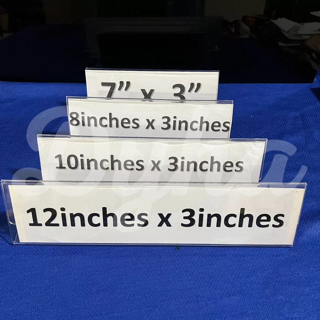 Clear Acrylic Stand Slant Style [12" x 3"] Table Name Sign Holder Landscape One sided Display L-