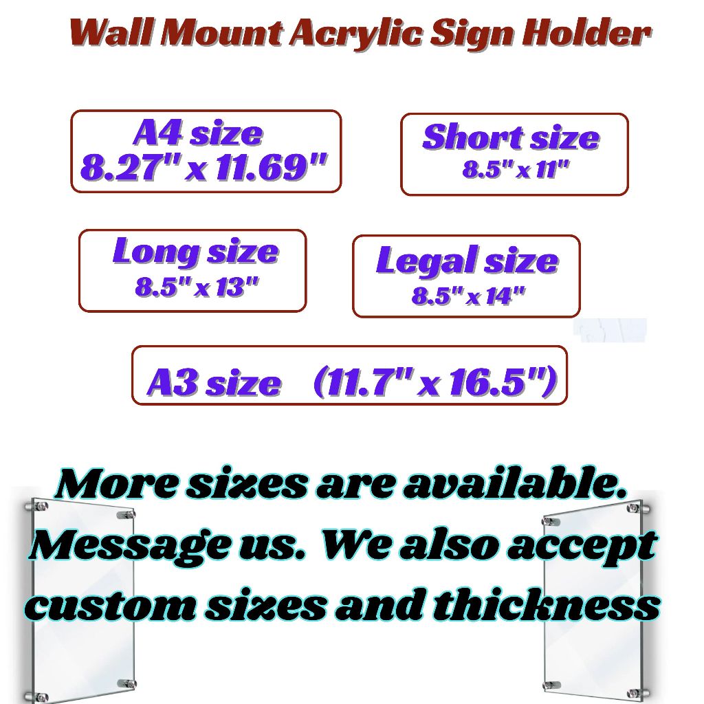 Clear Acrylic Wall Mount Floating Sign Holder Certificate Photo Frames A2 18x24 20x20 16x20 16x22