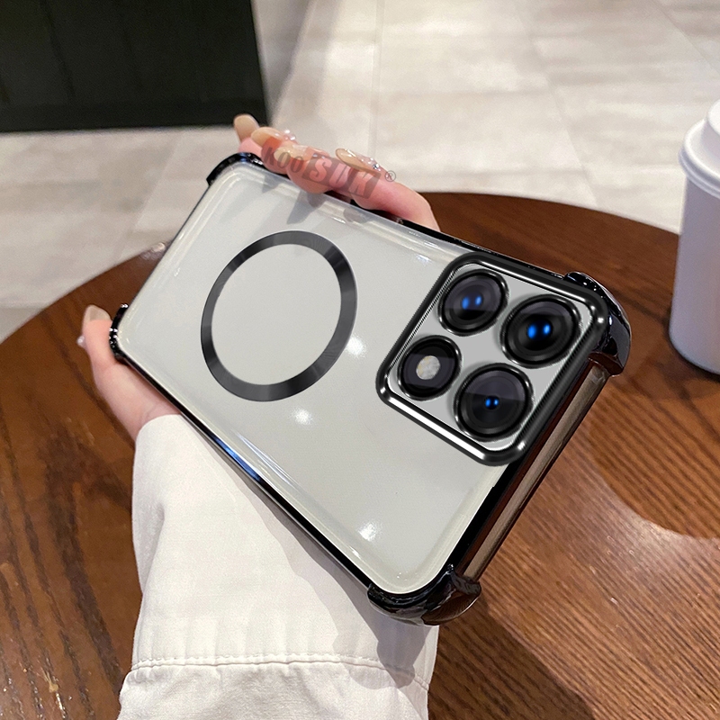 Clear Casing For Xiaomi Mi 14T 13T 12T Pro Magnetic Metal Ring Soft Transparent Phone Casing Shockproof Cover