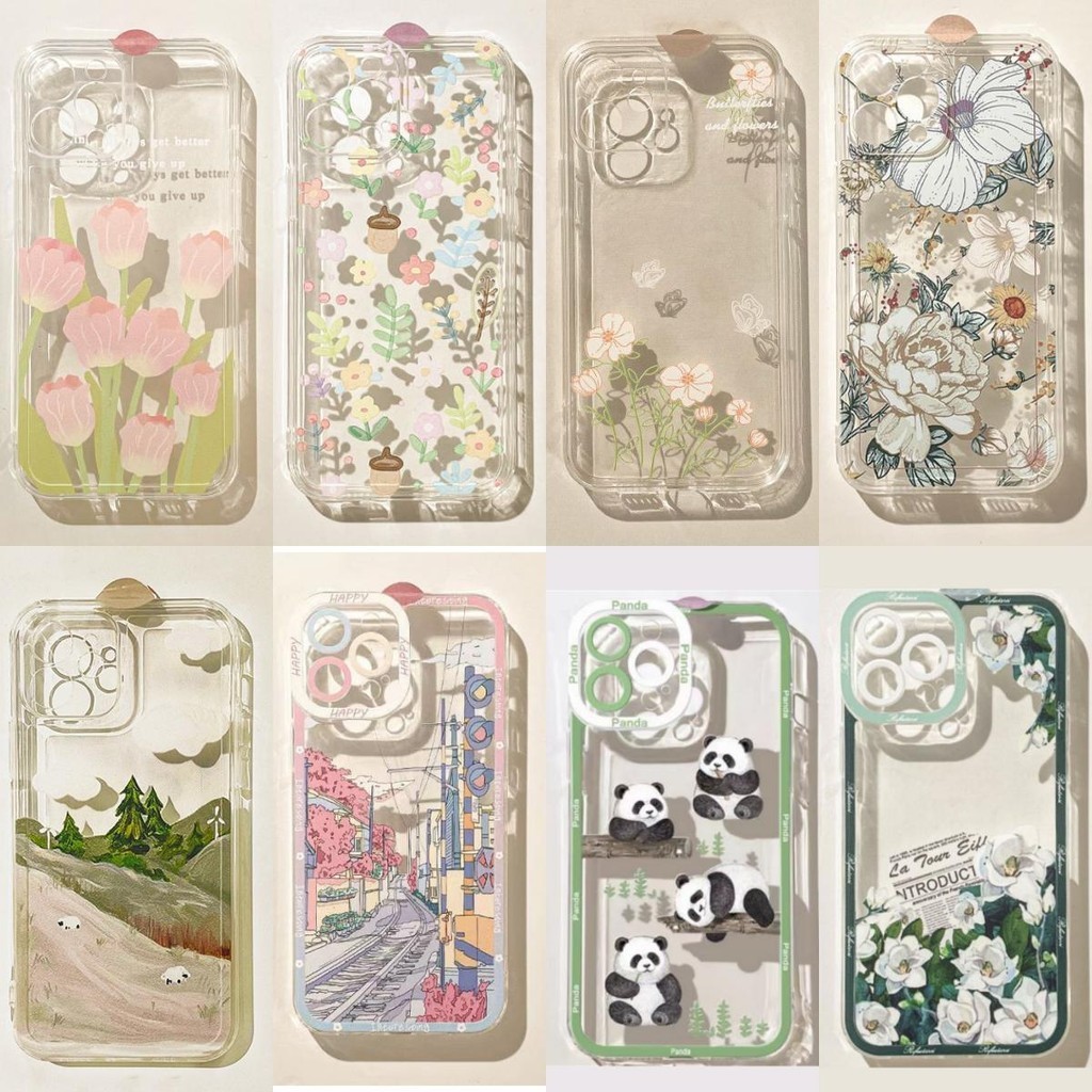 Clear Floral Summer Casing For Samsung Galaxy A02 A21S A11 A13 A10 A10S A31 A71 A55 A51 A30 A20 A24 Cute Panda Soft Silicone Transparent Phone Case
