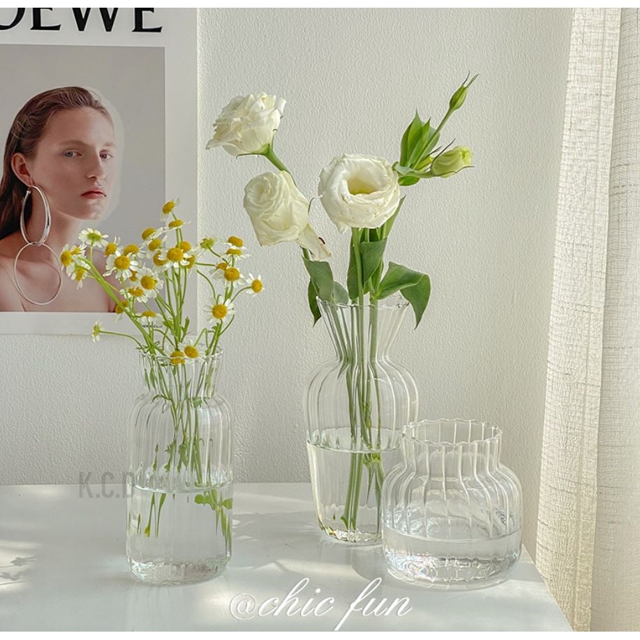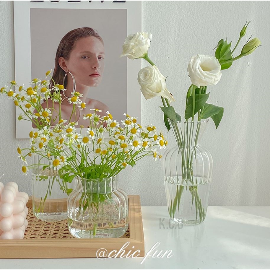 Clear Glass Bud Vase, Flower Decor Vases Decorative Small Opening Short Vase Multi R
