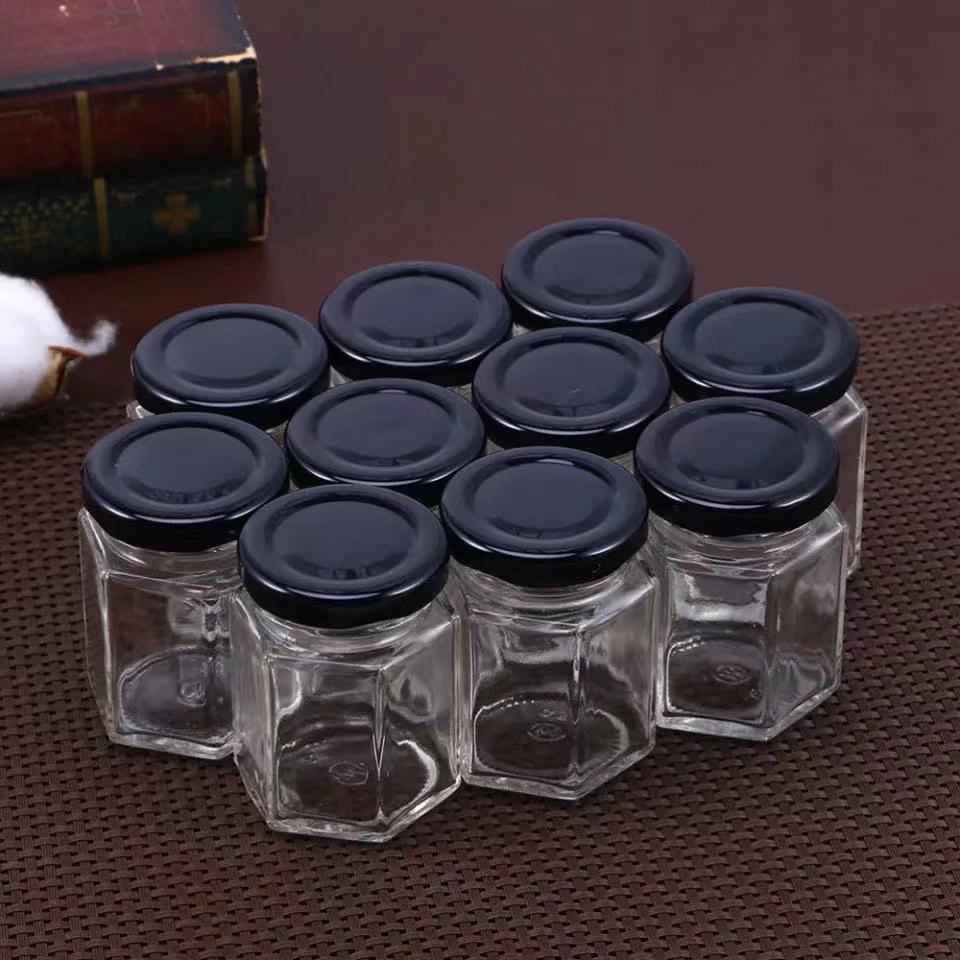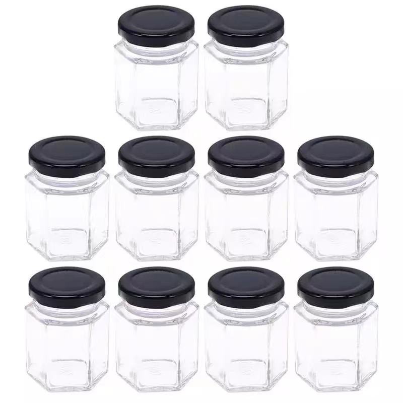 Clear Glass Jar Container with Black Lid Kitchen Spice Storage 45-730ML