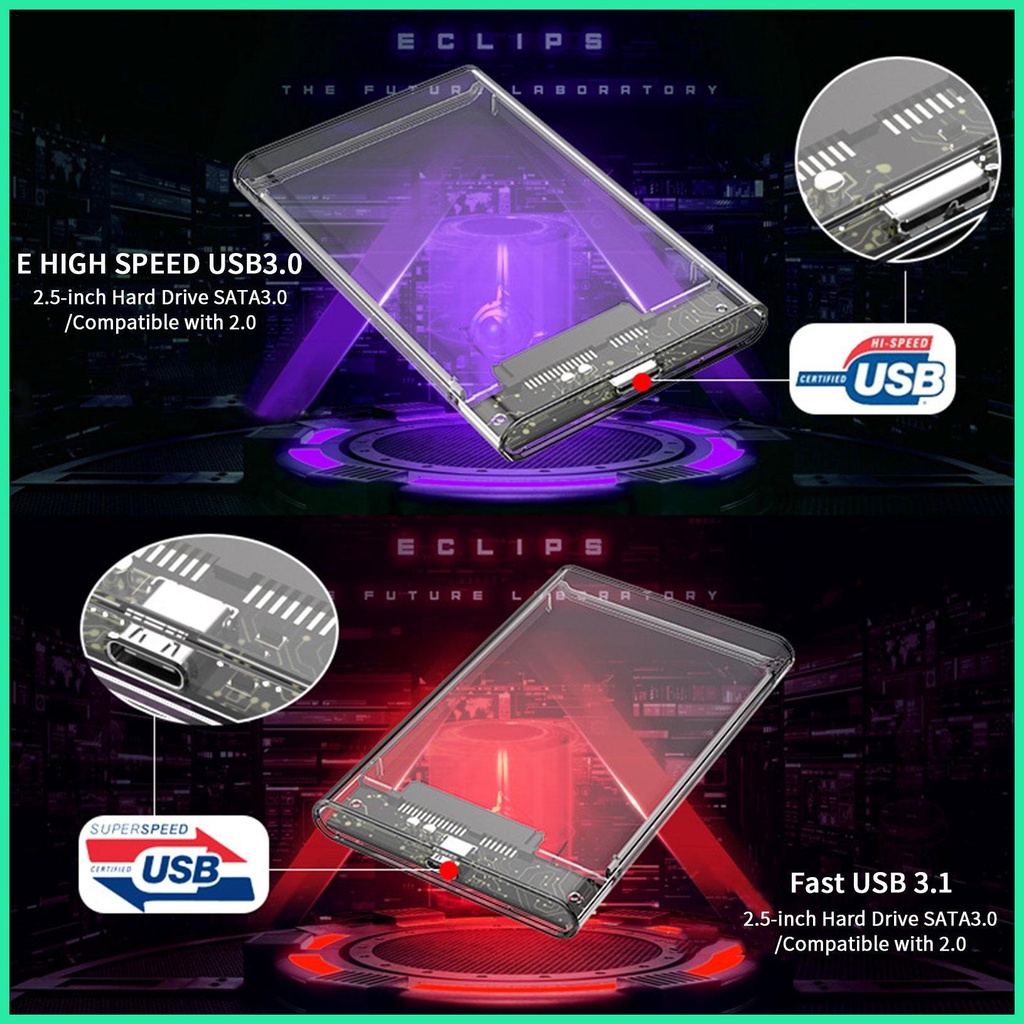 Clear Hard Drive Enclosure Lightweight USB 3.0 External Hard Drive Enclosure 2.5inches USB 3.0 Tool-Free Clear ladeph