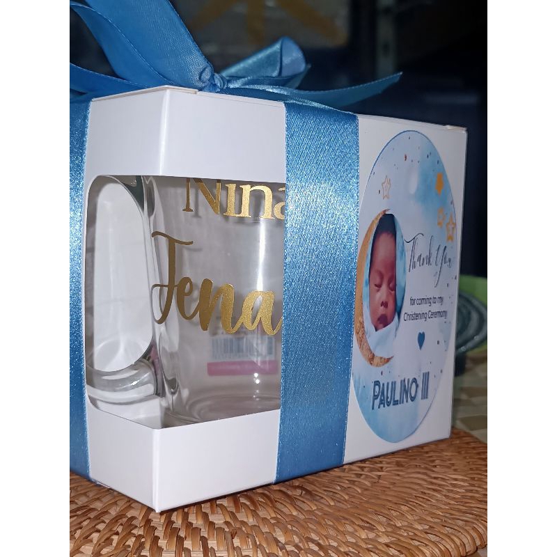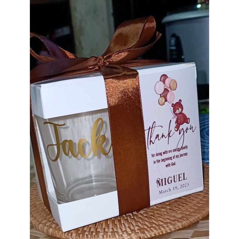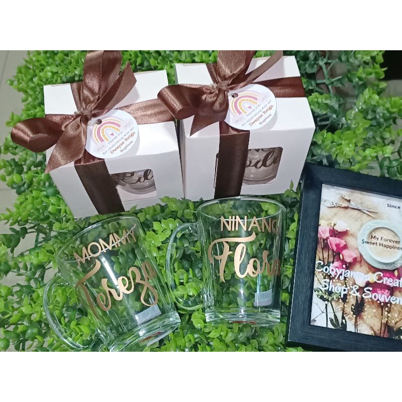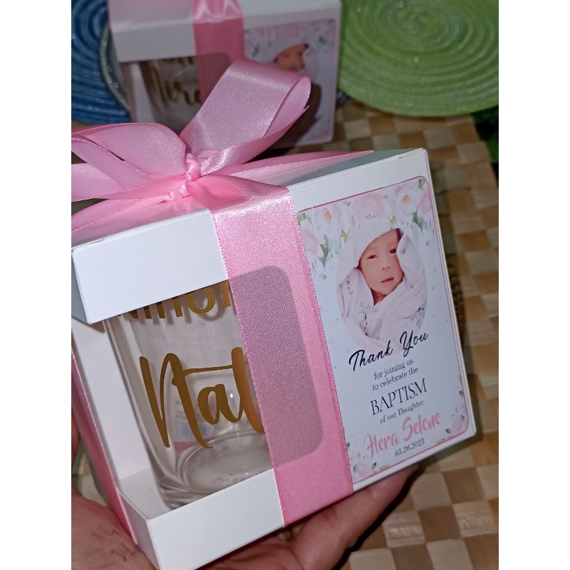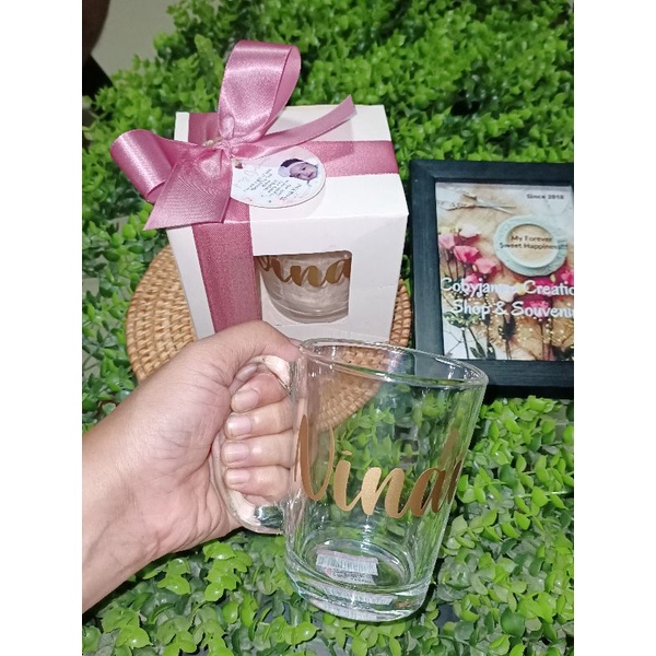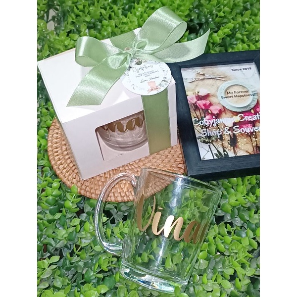 Clear Mug+Personalized Sticker+Window Box, Ribbon and tag