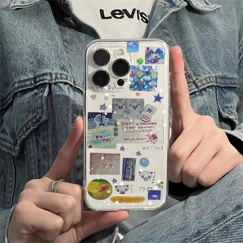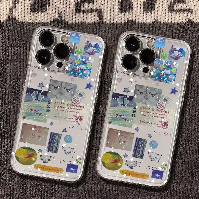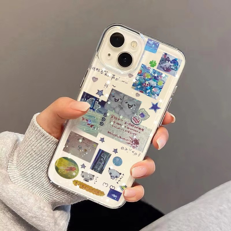 Clear Phone Case For Samsung A16 A15 A14 A13 A12 A26 A25 A24 A23 A36 A35 A34 A06 A05 Splicing Graffiti Stars Cover