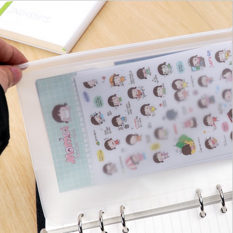 Clear Pocket Ziplock for Binder Notebook Clip Binder 6/20/26Holes Refillable A5/A6/B5