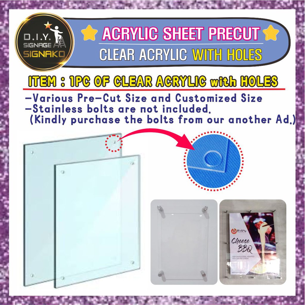 Clear Transparent Acrylic Sheet with Holes / Wall Frame Paper Holder Plastic Glass Plexiglass Plate