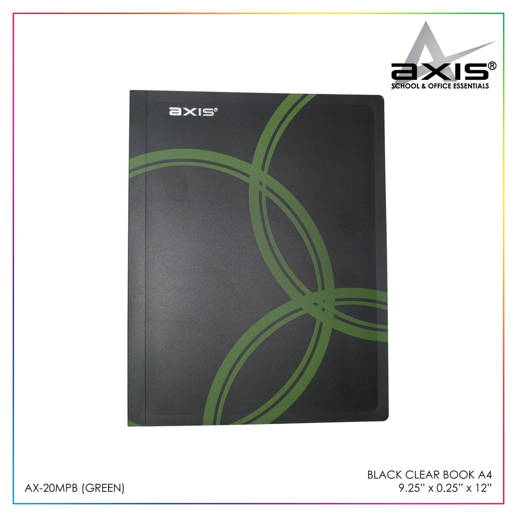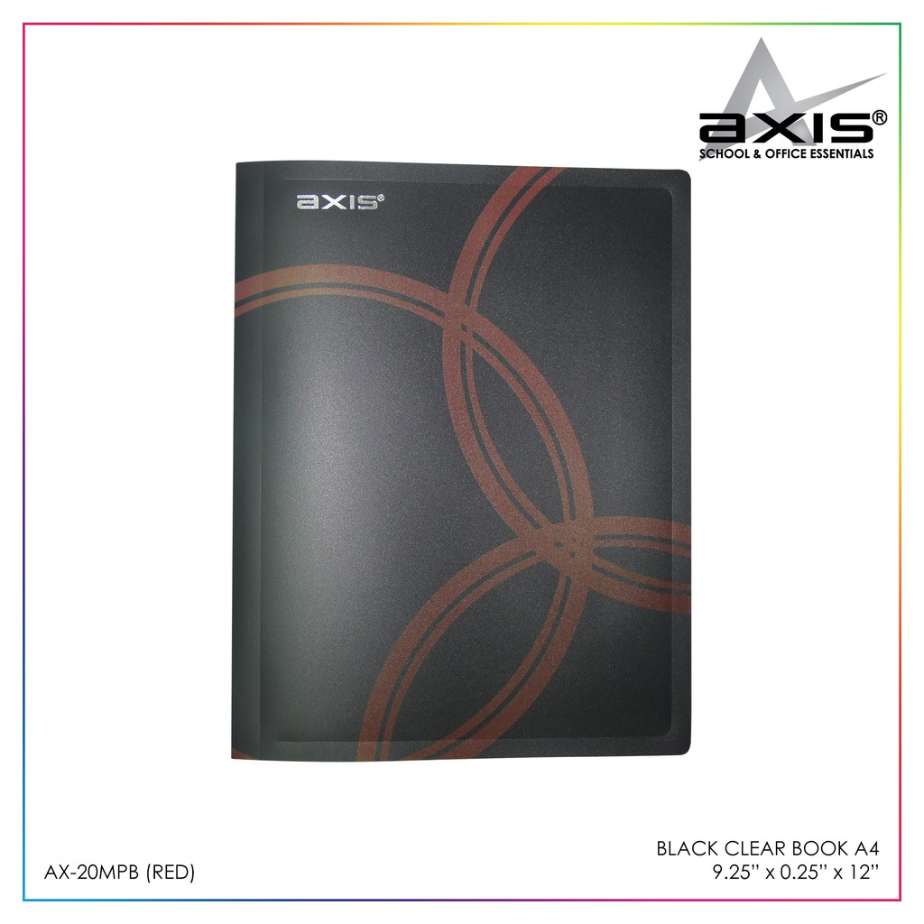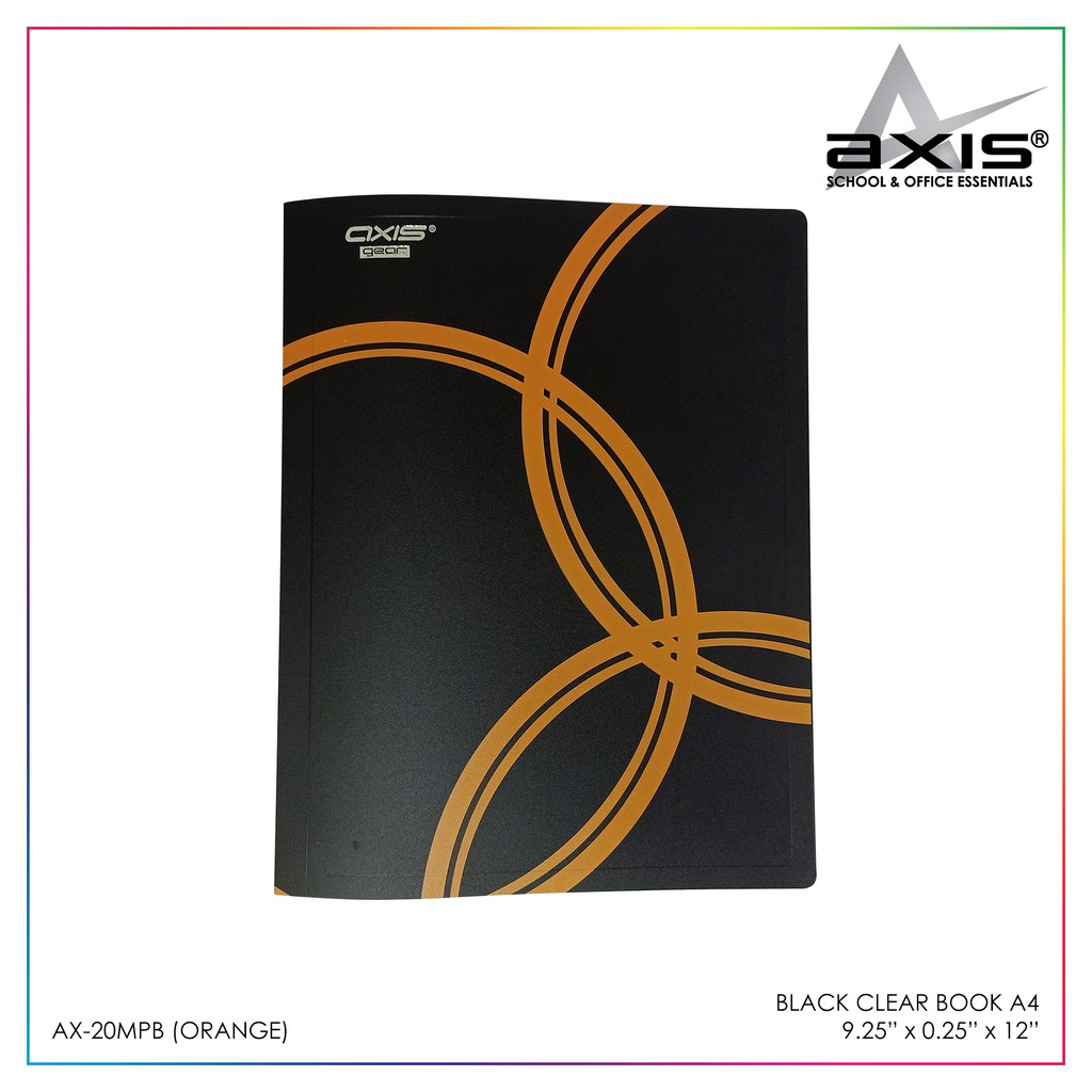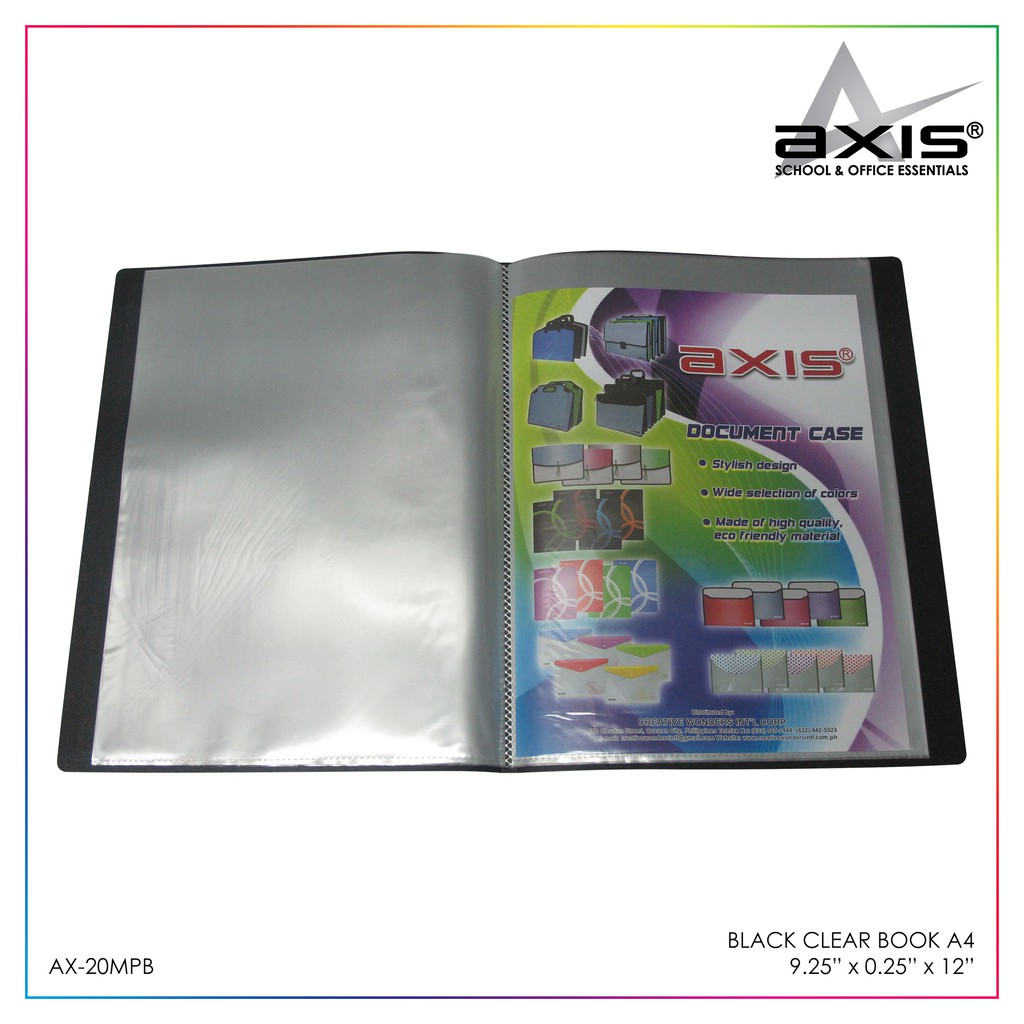 Clearbook Black Short A4 Folder Display Book Non-Refillable 20 Pockets Axis AX-20MPB