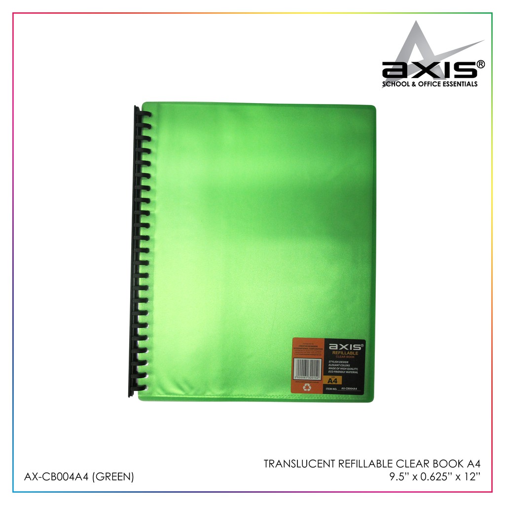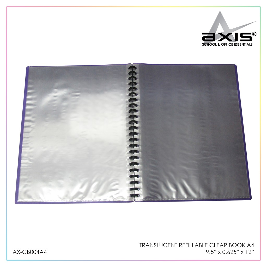 Clearbook Translucent Colored Short A4 Folder Display Book Refillable 20 Pockets Axis AX-CB004A4