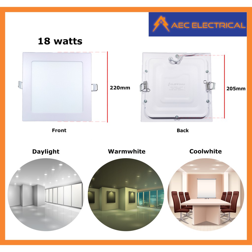 Clifford LED Panel Light Square Recessed Type Energy Saving Bright (Daylight/Warmwhite/Coolwhite) v5