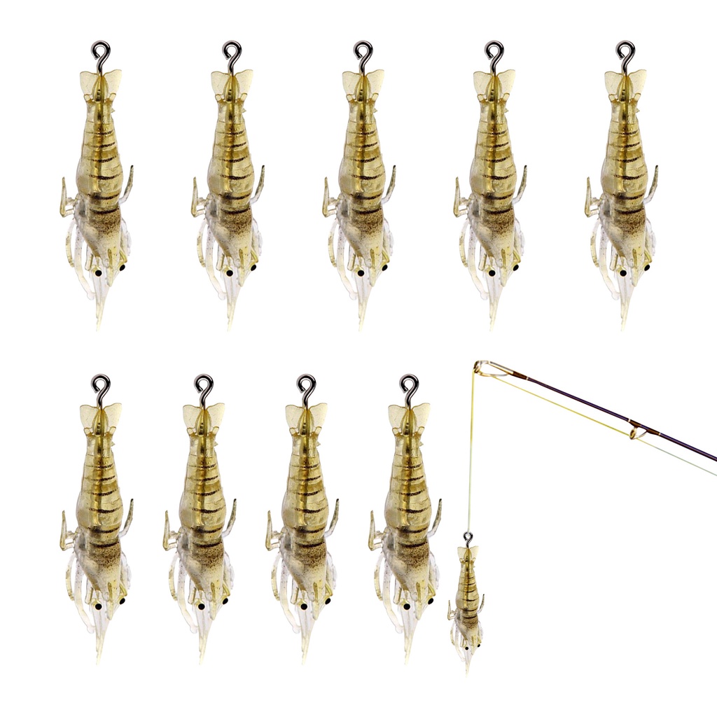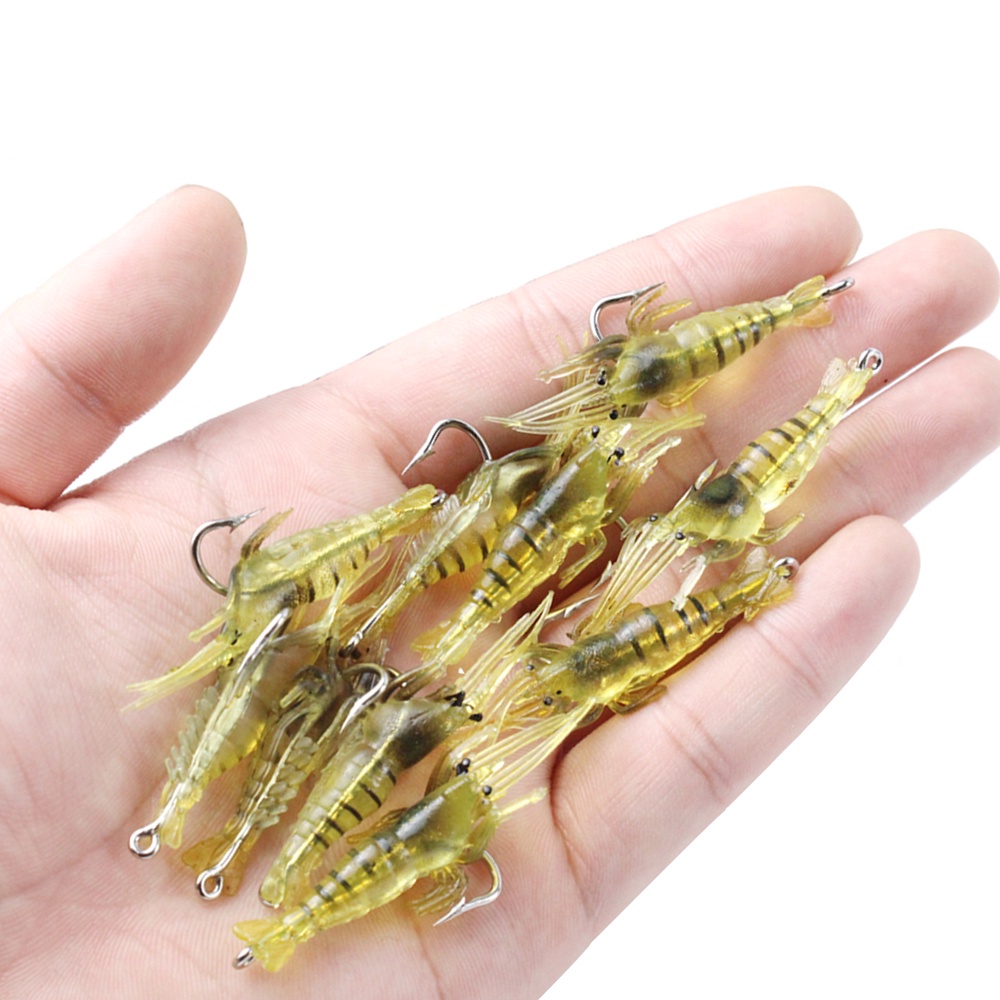 10PCS Soft Shrimp Bait Simulation Soft Fishing Lures Bass Crank Hook Bait Tackle