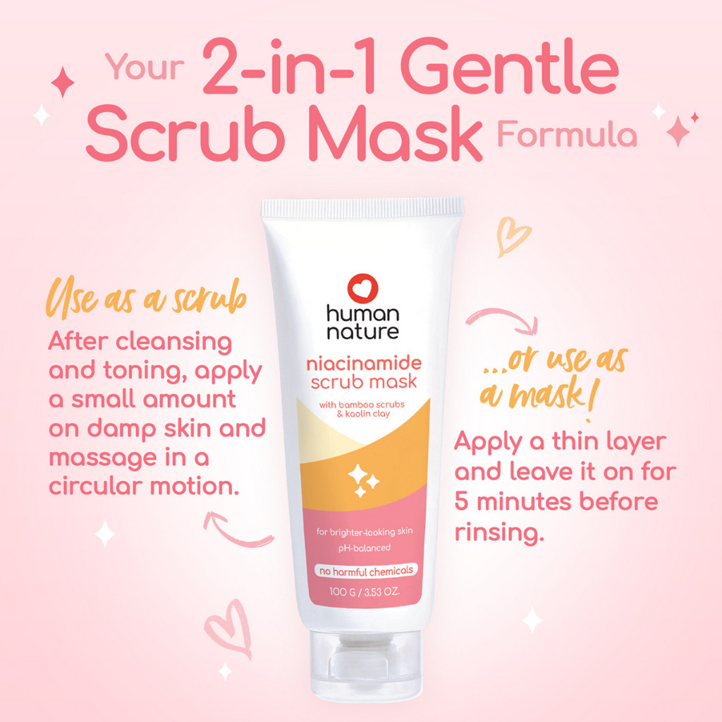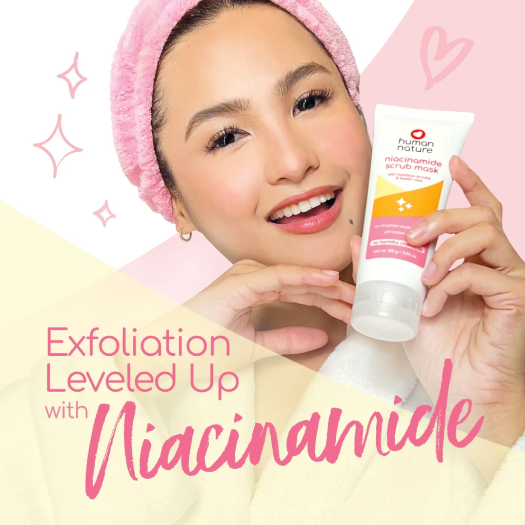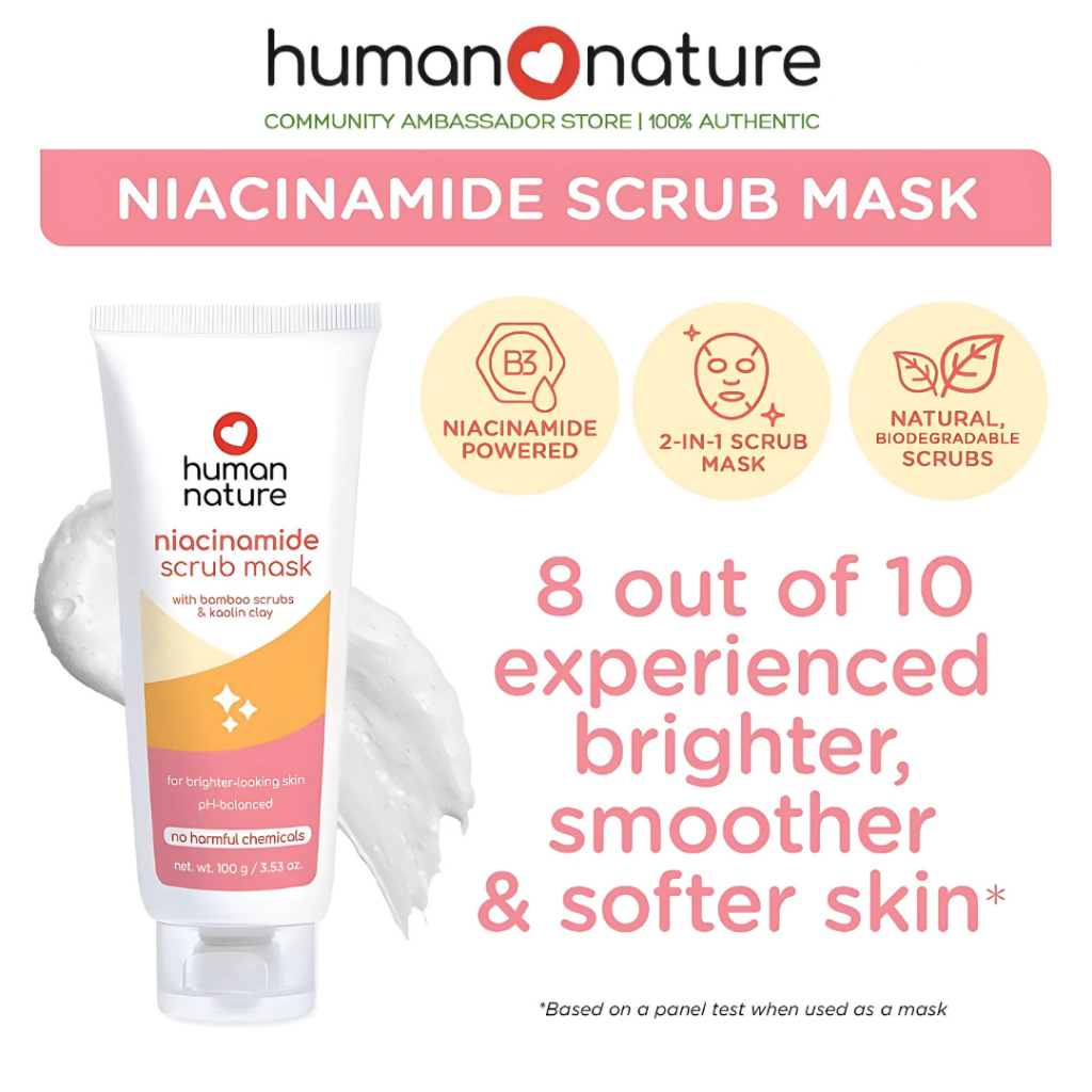 Human Nature Niacinamide Scrub Mask With Bamboo Scrubs & Kaolin Clay 100g, For Brighter-Looking Skin