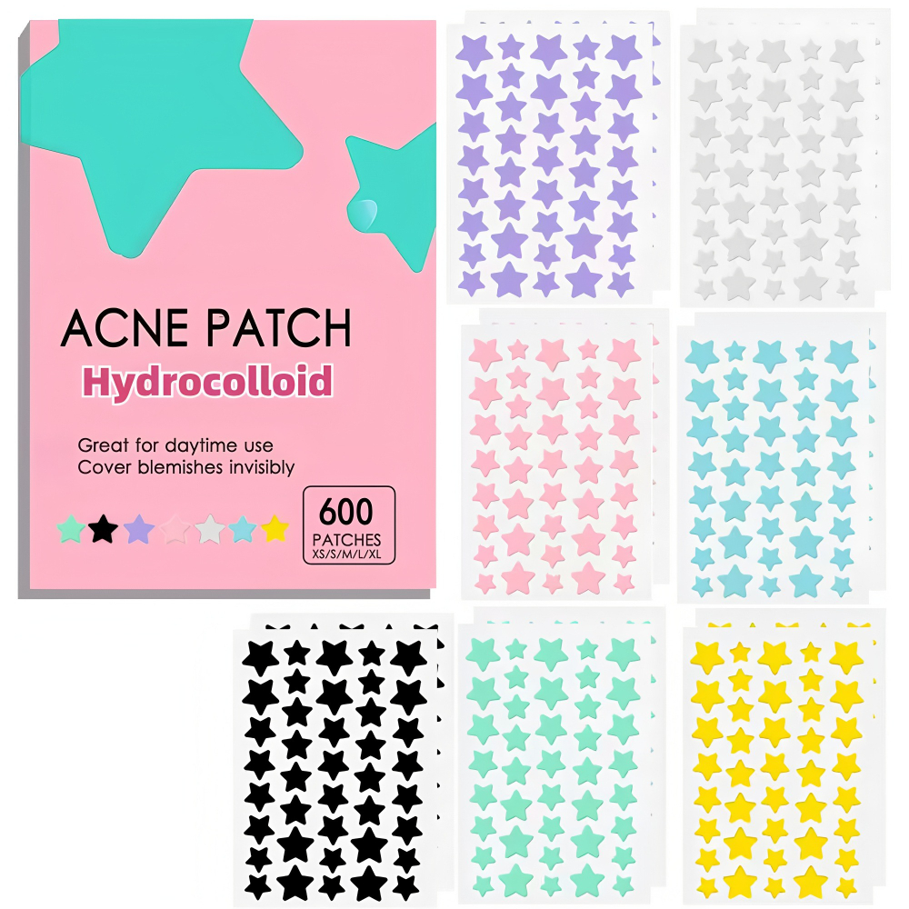 【HOT】 200/400/600pcs Cute Hydrocolloid Acne Patches, Reduces Redness, Multiple Shapes, Absorbs Secretion