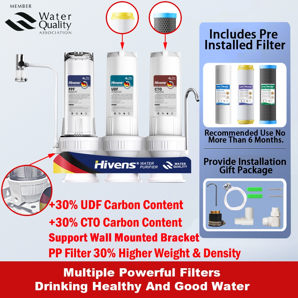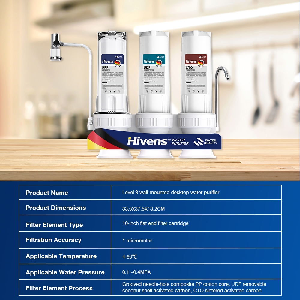 Hivens Counter 3 Stage Water Purifier For Family Water Filter Housing Kitchen Water Filtration