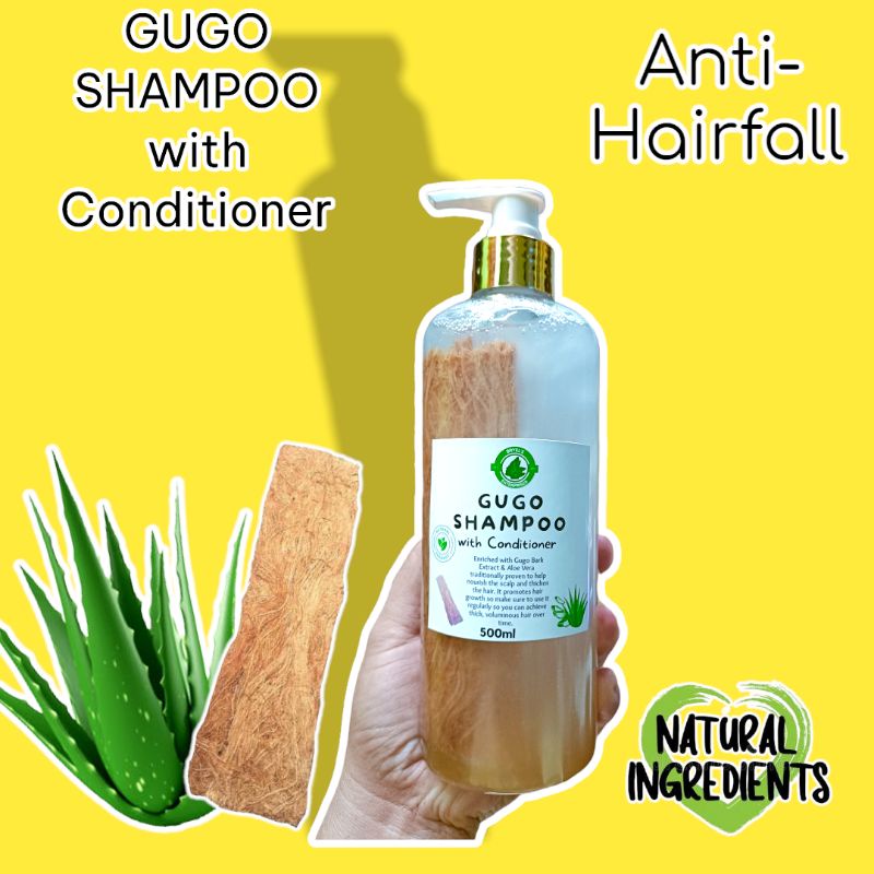 500ml ALL NATURAL GUGO SHAMPOO WITH CONDITIONER ENRICHED WITH ALOE VERA EXTRACT FOR ANTI-HAIRFALL