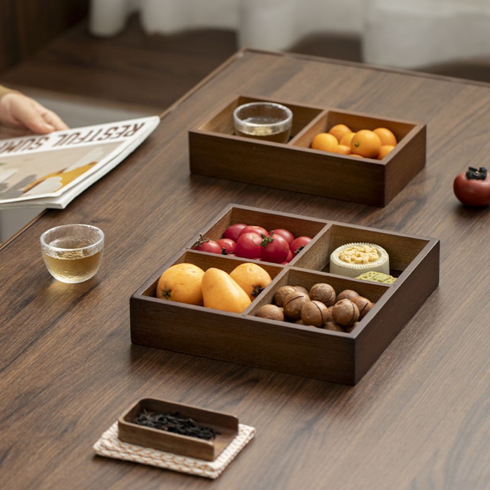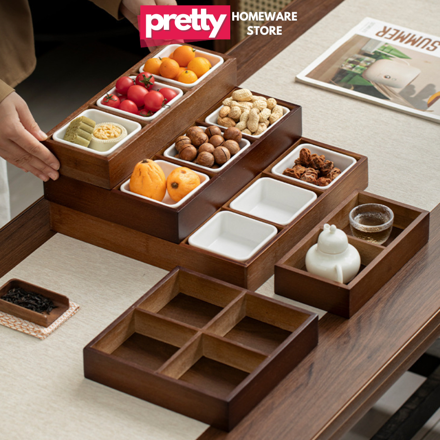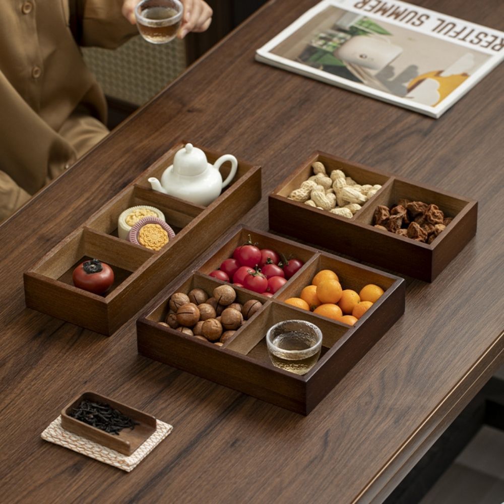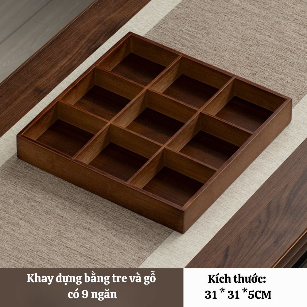 Luxury Walnut Wood Jam Tray CNY 9 Compartments, Wooden Divided Confectionery Tray