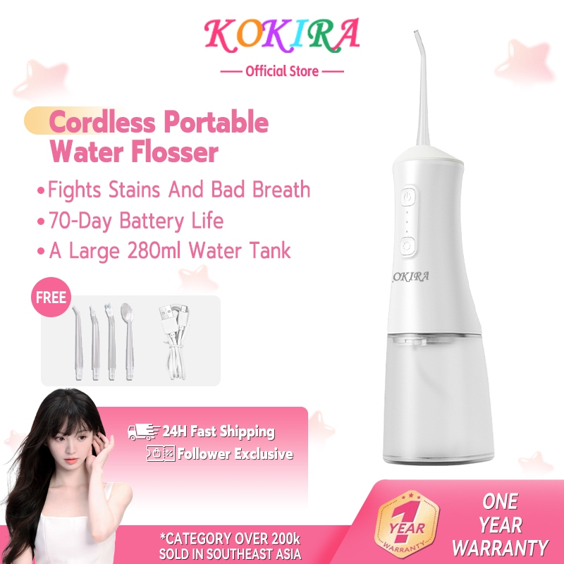 KOKIRA Cordless Water Flosser Oral Care For Braces Battery Life Of 70 Days 1400 RPM 280ML Portable Oral Irrigator Water Dental Flosser