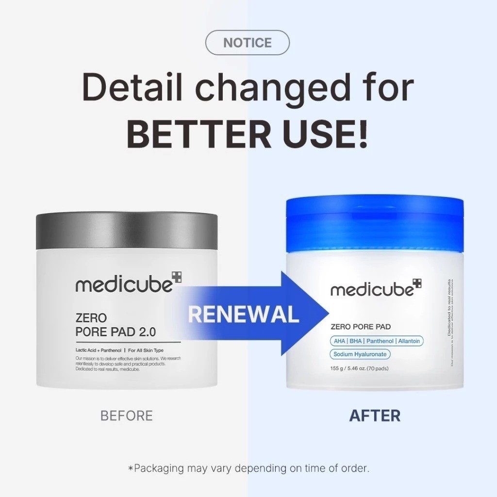Medicube Zero Pore Pad (70 pads) Gentle Exfoliating Pads,Refine Pores, Brighten & Smooth Skin Toner