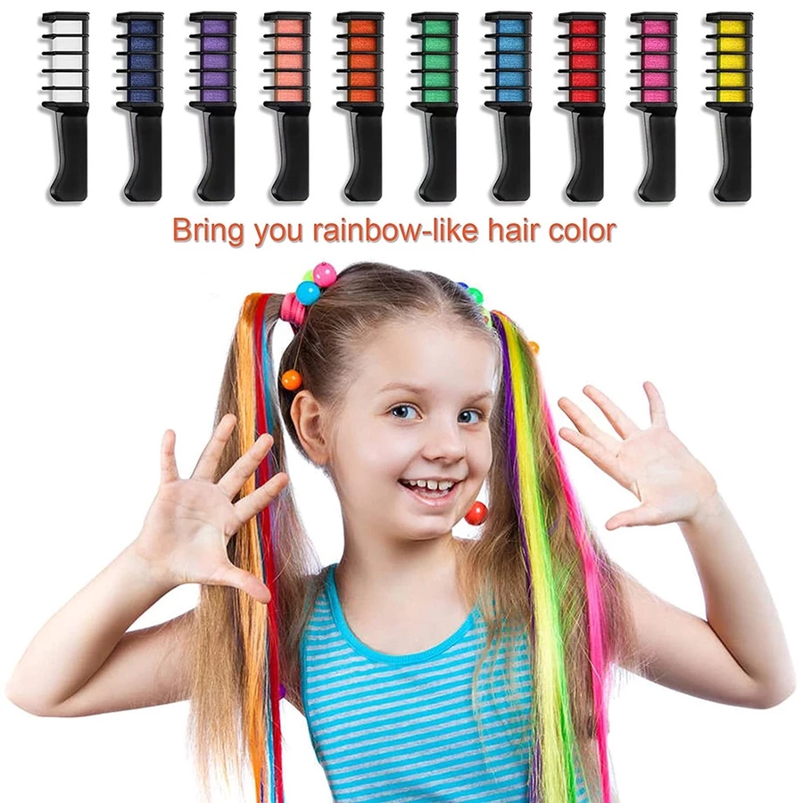 10 Color Temporary Hair Color Chalk Comb Set, Washable Hair Chalk for Girls Kids Party Cosplay DIY