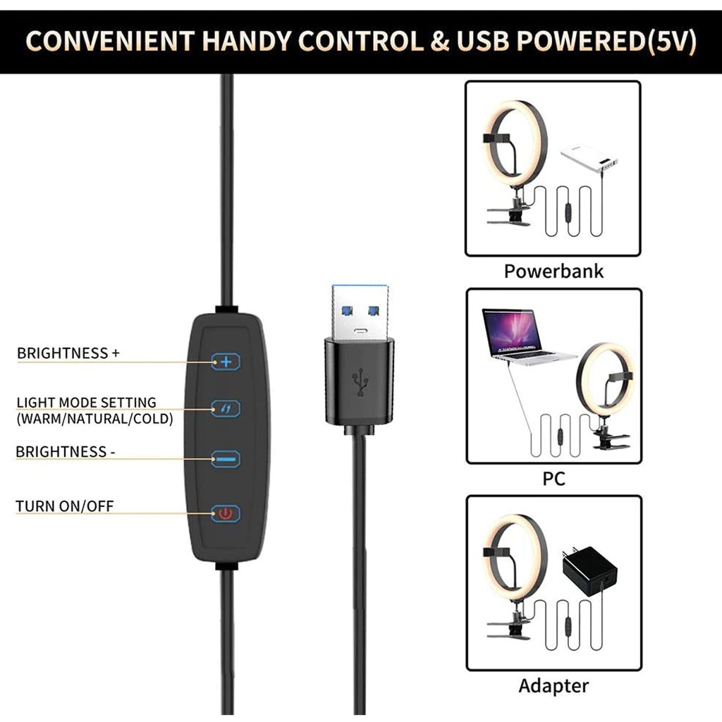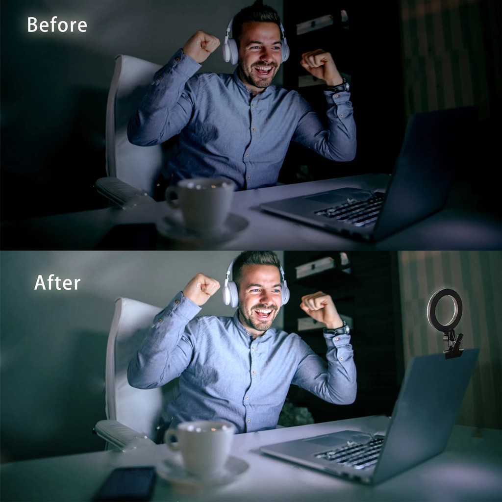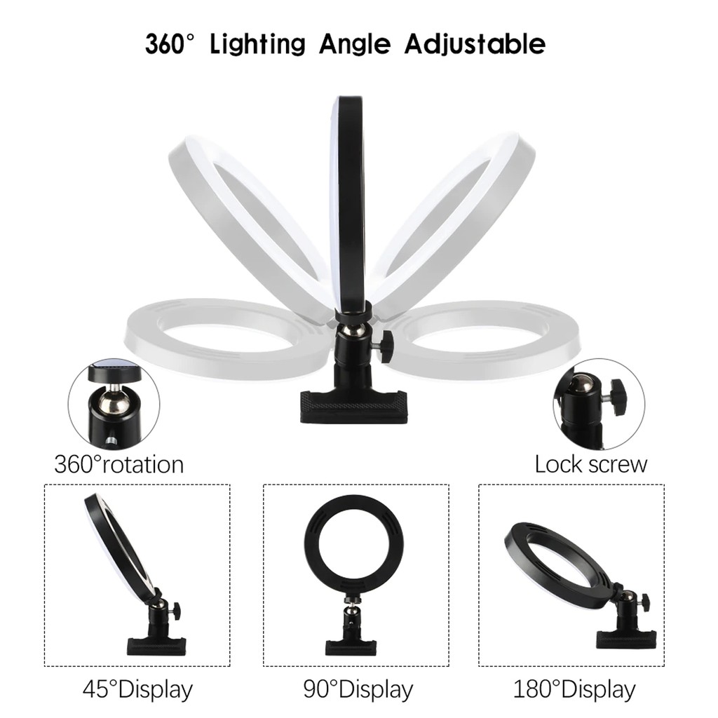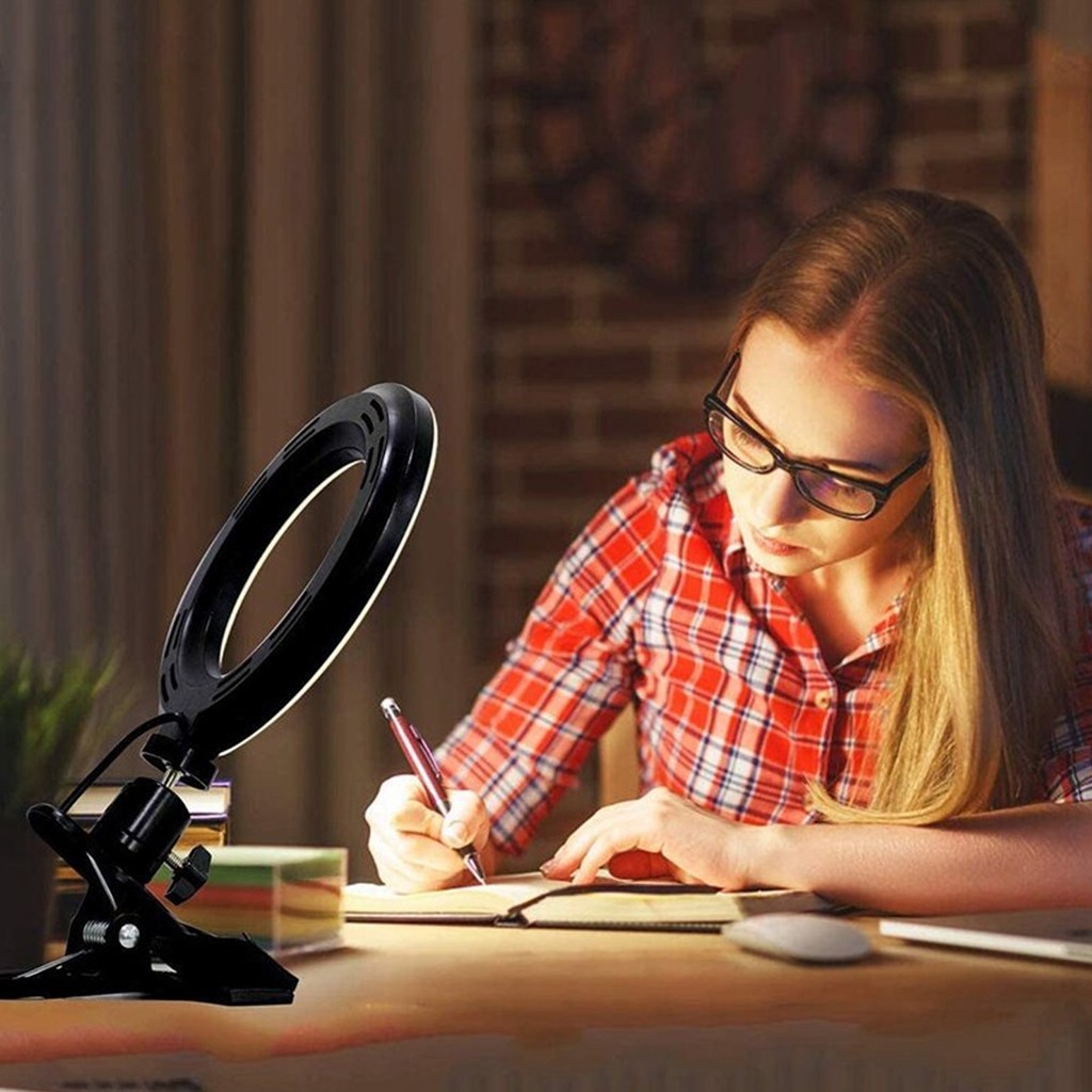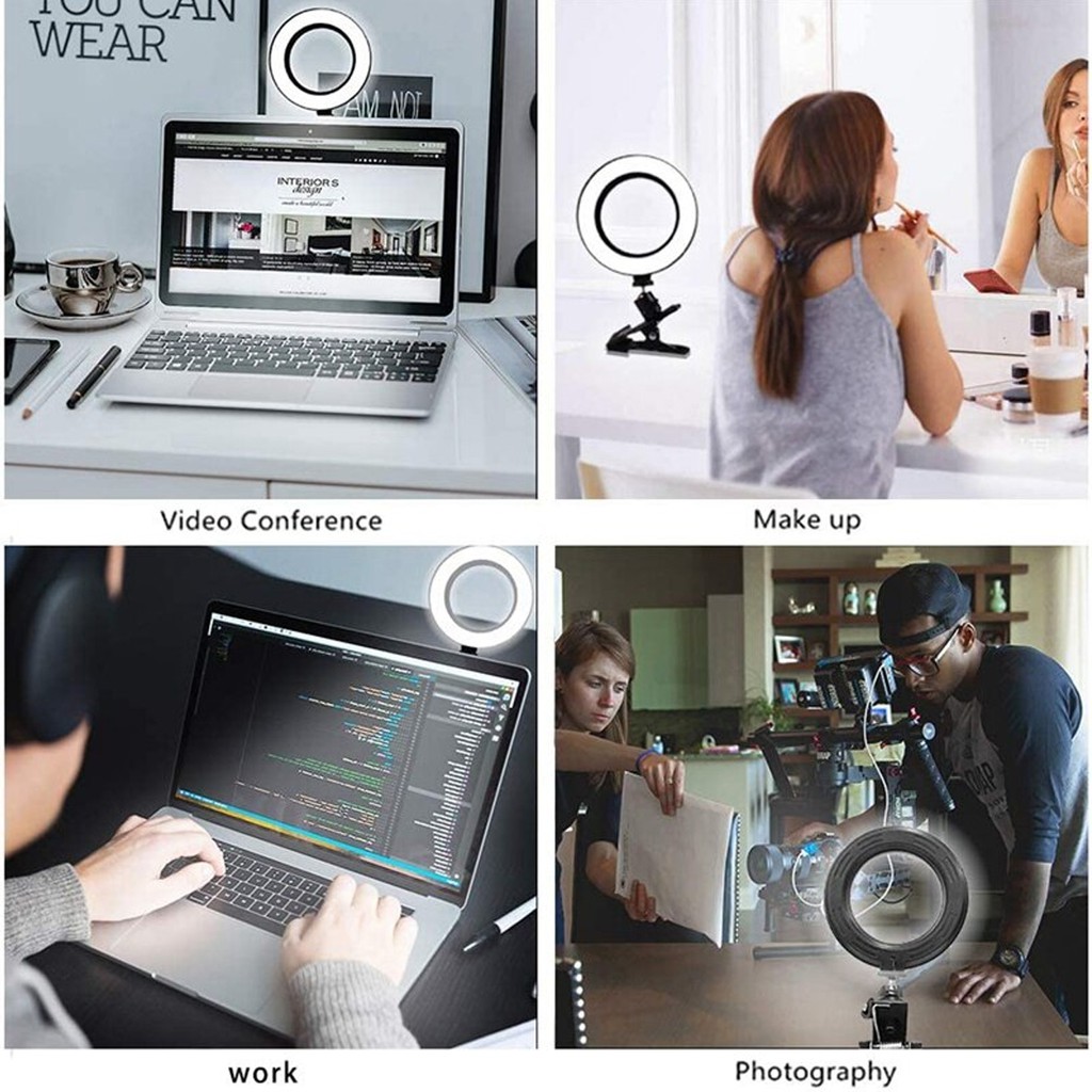 Clip On Dimmable LED Ring Light Camera Photo Studio Photography Video Makeup Ring Lamp