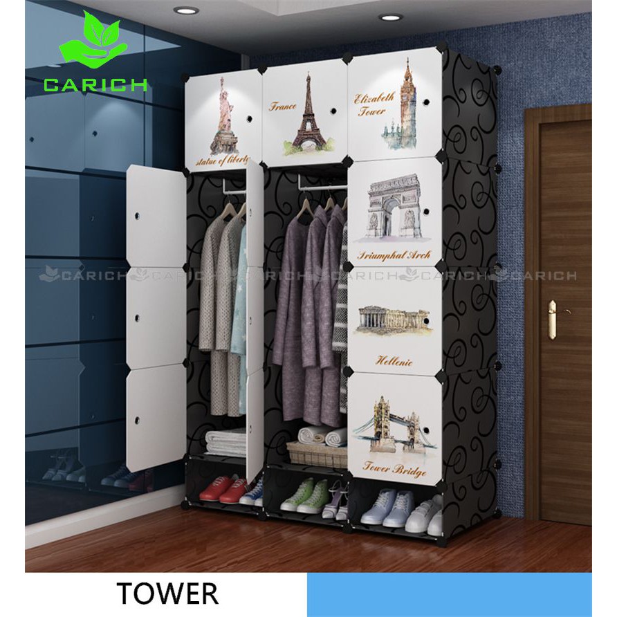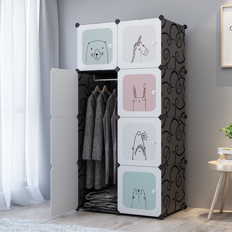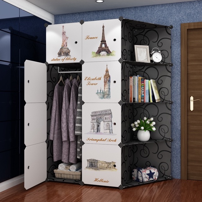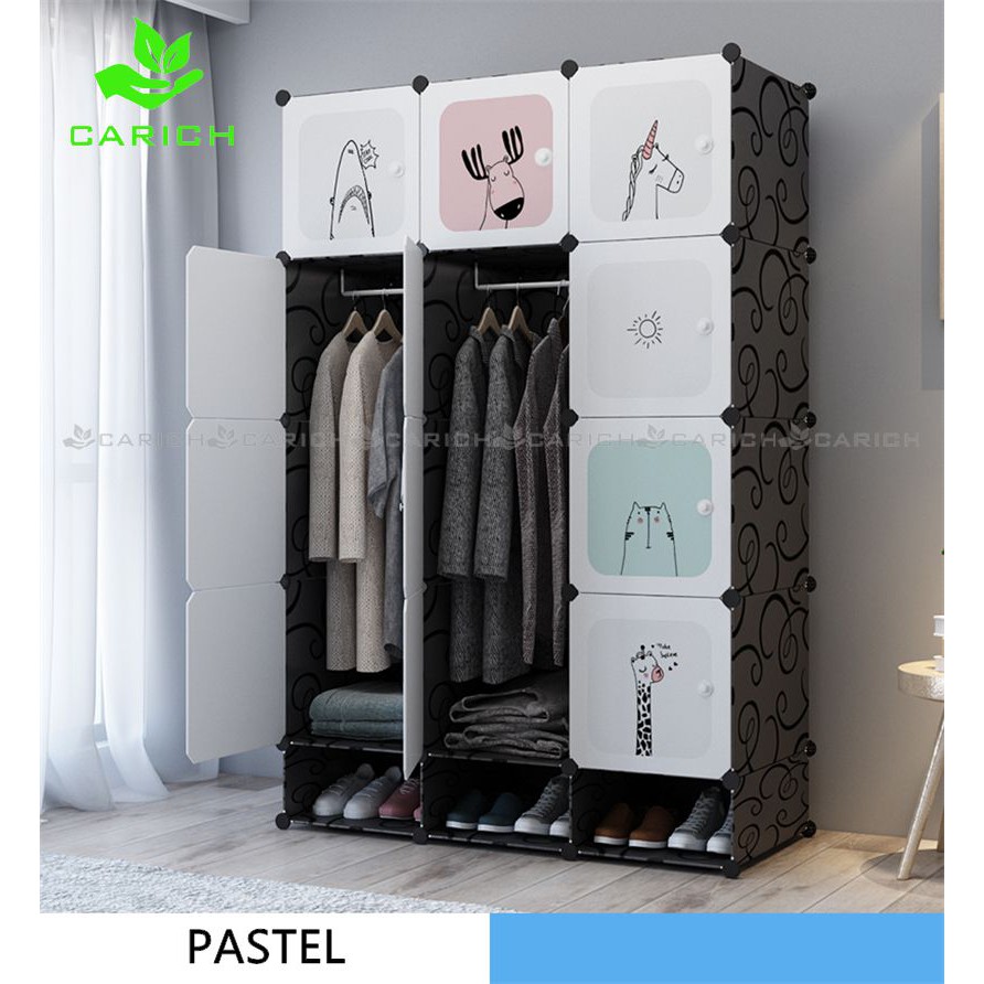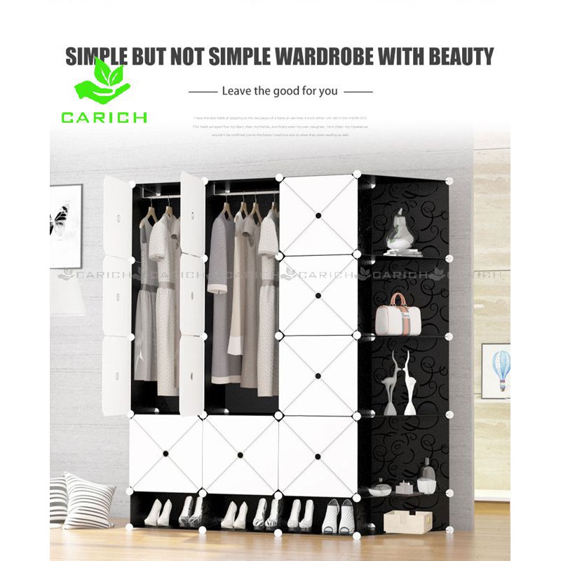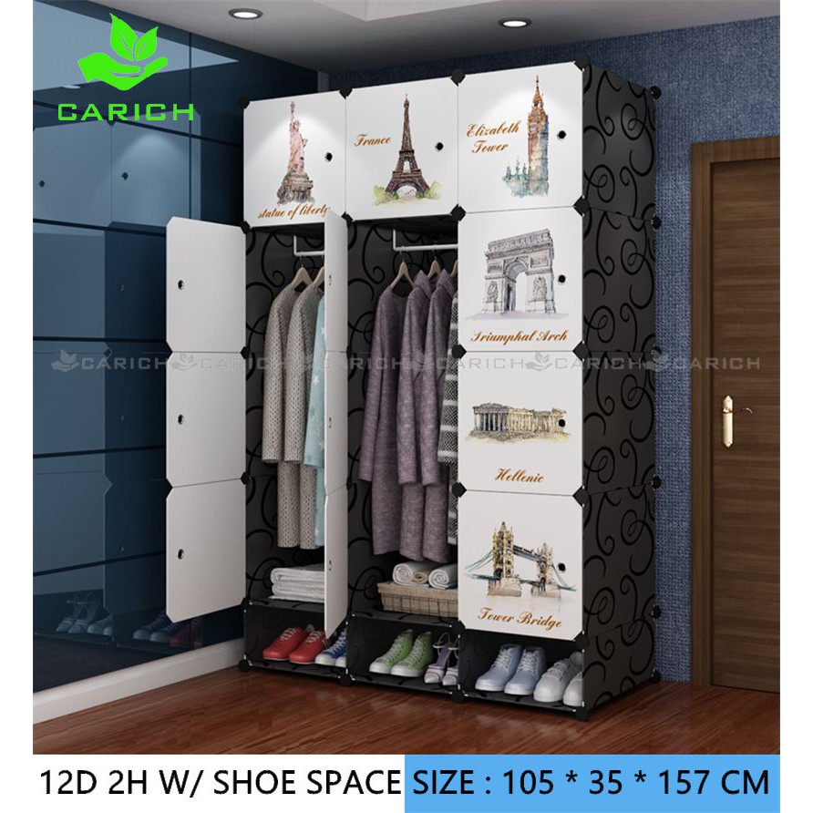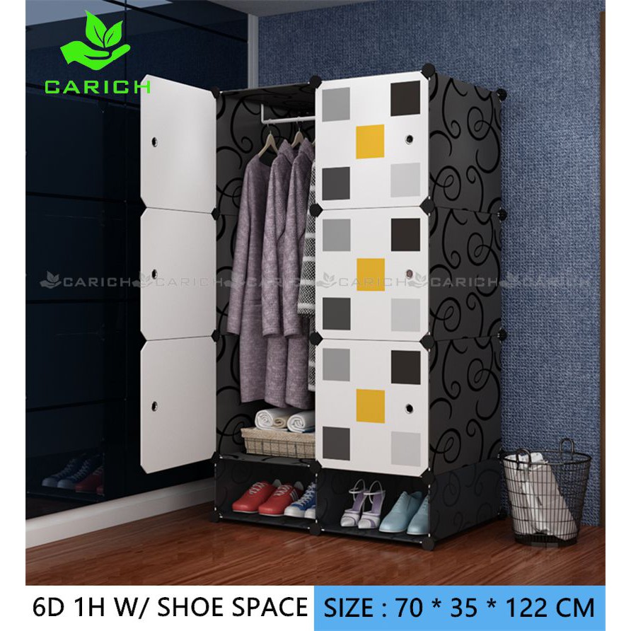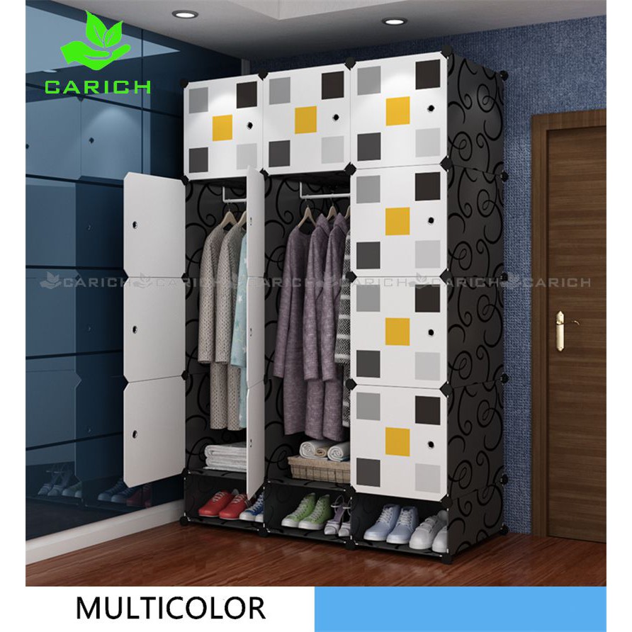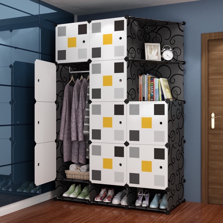 Clothes Cabinet DIY Wardrobe Closet Organizer With Hanger Shoe Rack Screwless Stackable Multipurpose