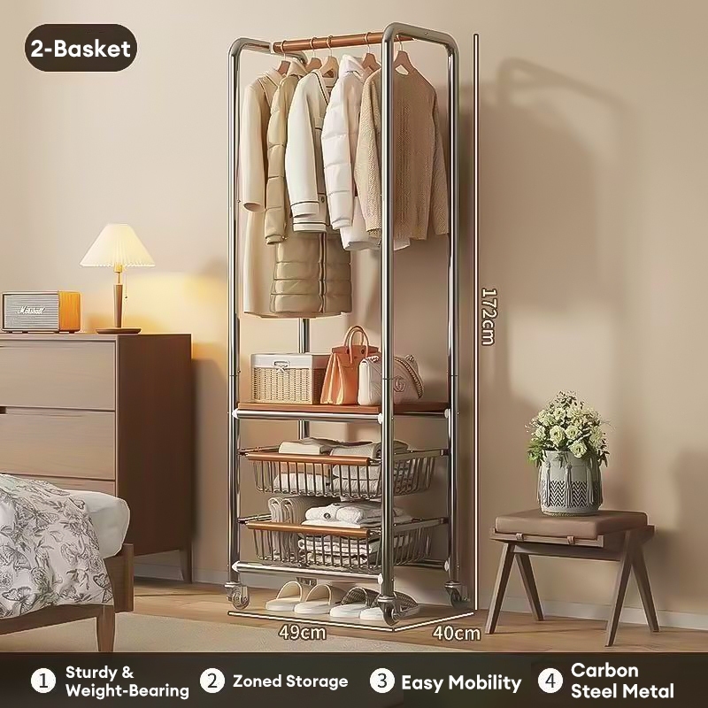 Clothes Rack Clothes Hanger Rack For Clothes Heavy Duty With Basket Bedroom Clothes Hanger Organizer