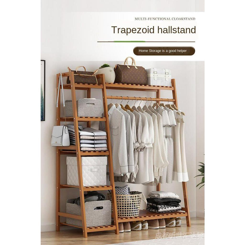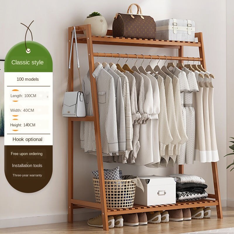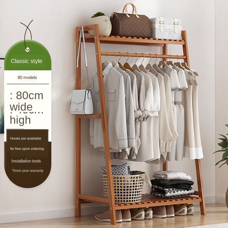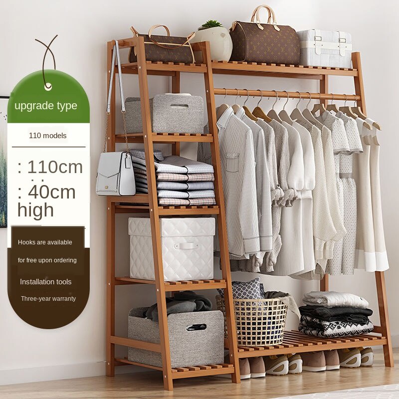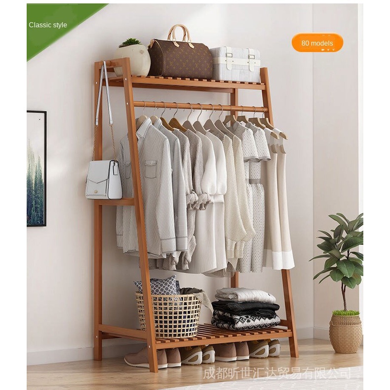Clothes hanger floor storage rack bedroom simple wardrobe storage rack solid wood clothes hanger mul