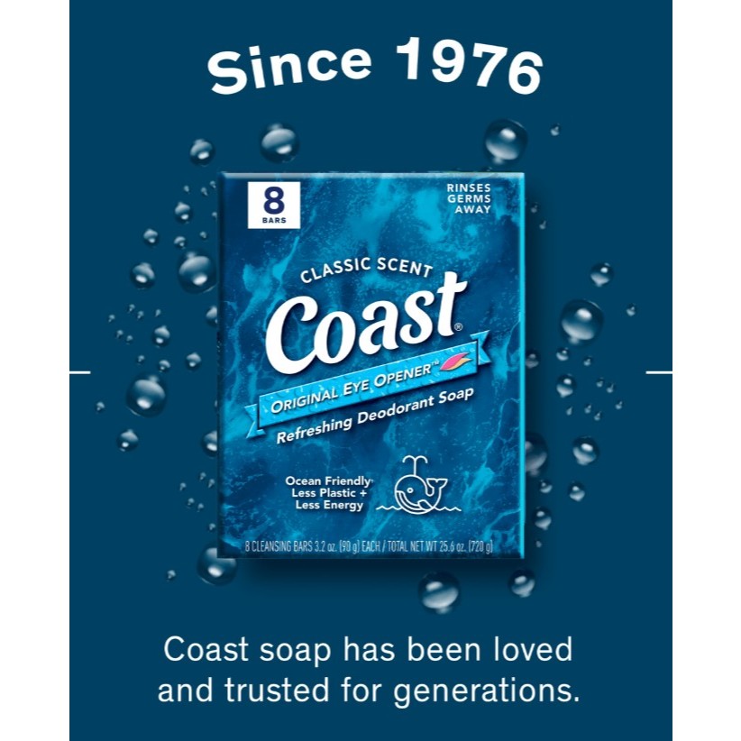 Coast Deodorant Bar Soap 4oz Classic Scent Thick Rich Lather Clean-Rinsing Fresh Feel