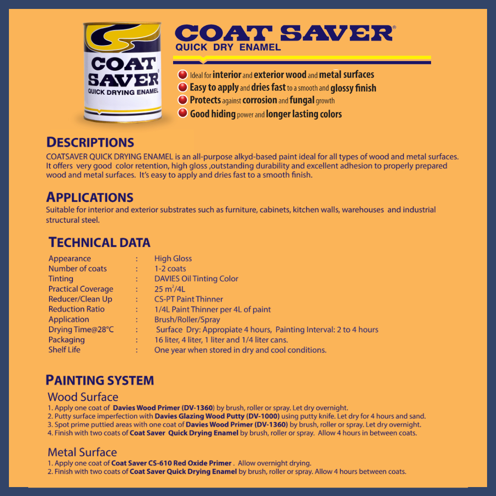 Coat Saver Quick Dry Enamel (Alkyd Based) 1/4L
