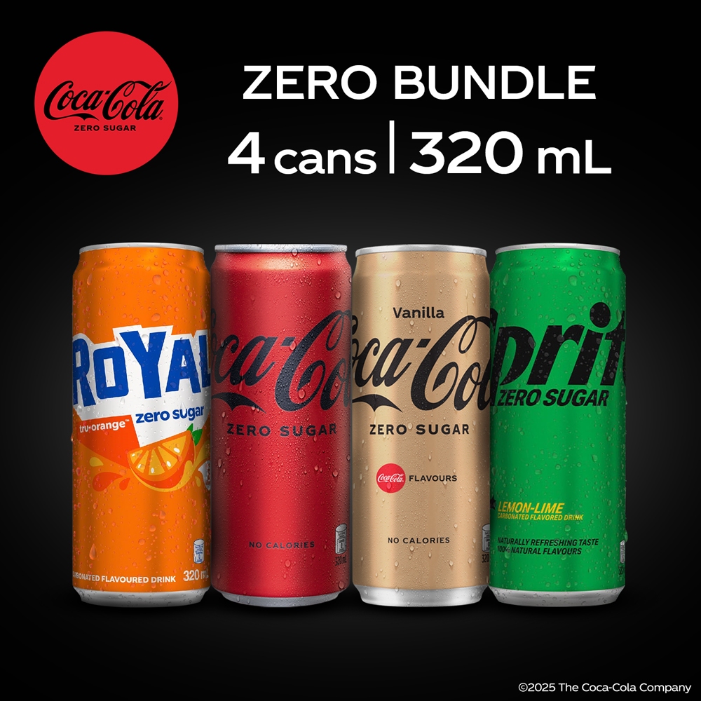 Coca-Cola, Vanilla, Royal, Sprite Zero Sugar Softdrinks Bundle 320ml - Pack of 4