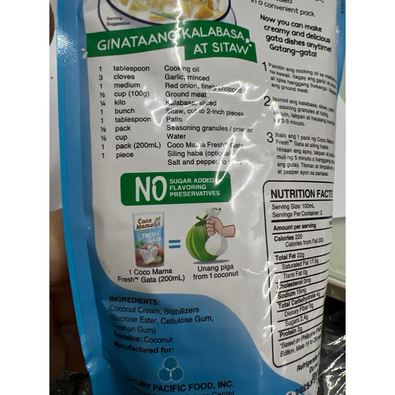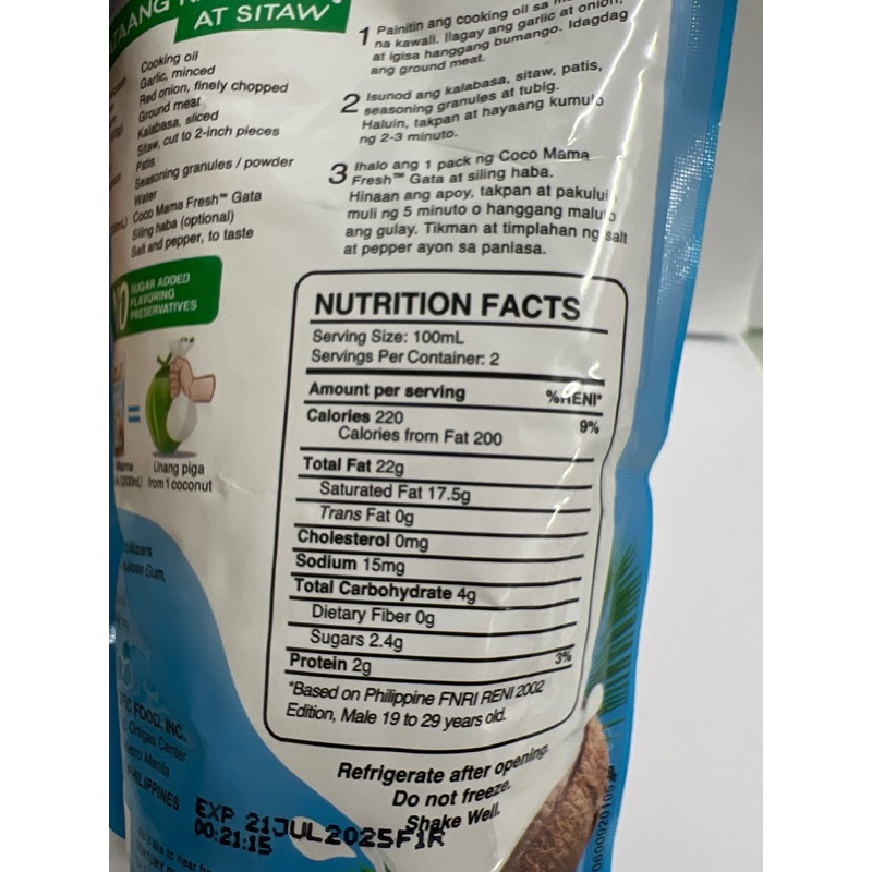 Coco Mama Fresh Gata 200mL coconut cream unang piga