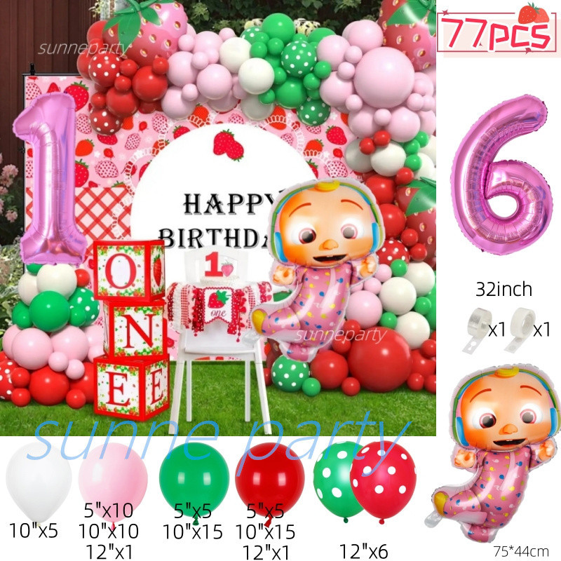 Cocomelon Balloon Garland Arch Kit Girl JOJO Pink Number Foil Balloon Birthday Party Decorations