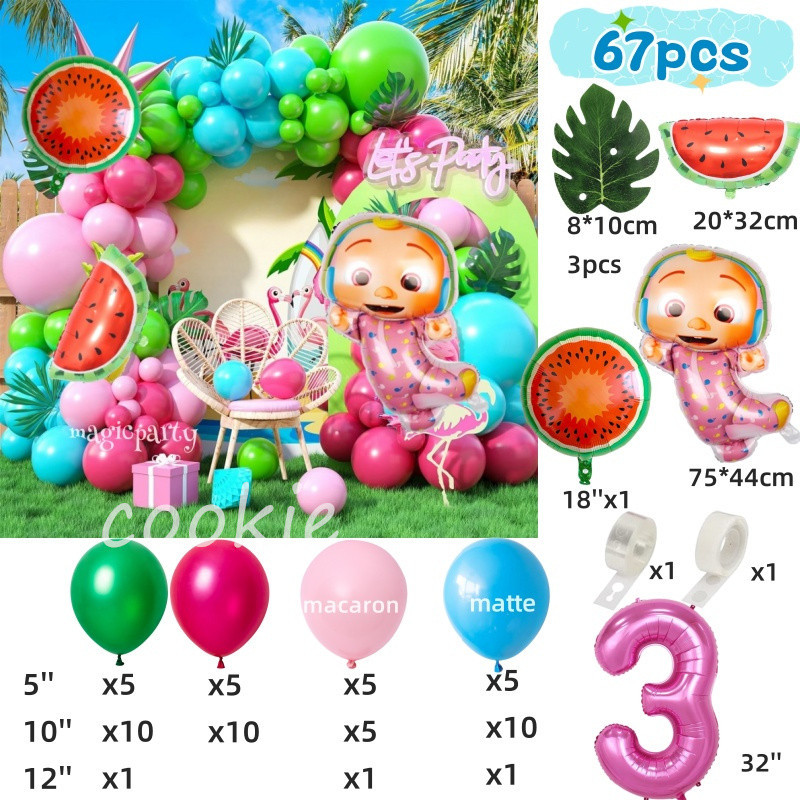 Cocomelon Balloons Leafs Watermelon Cartoon JOJO Foil Balloons Birthday Decoration Set Party Needs