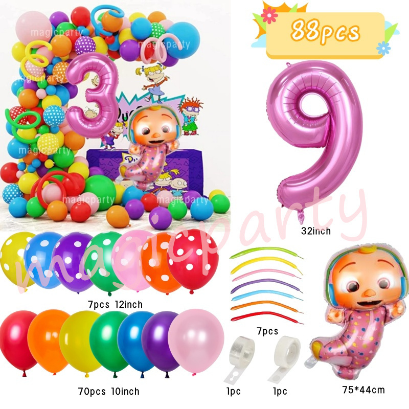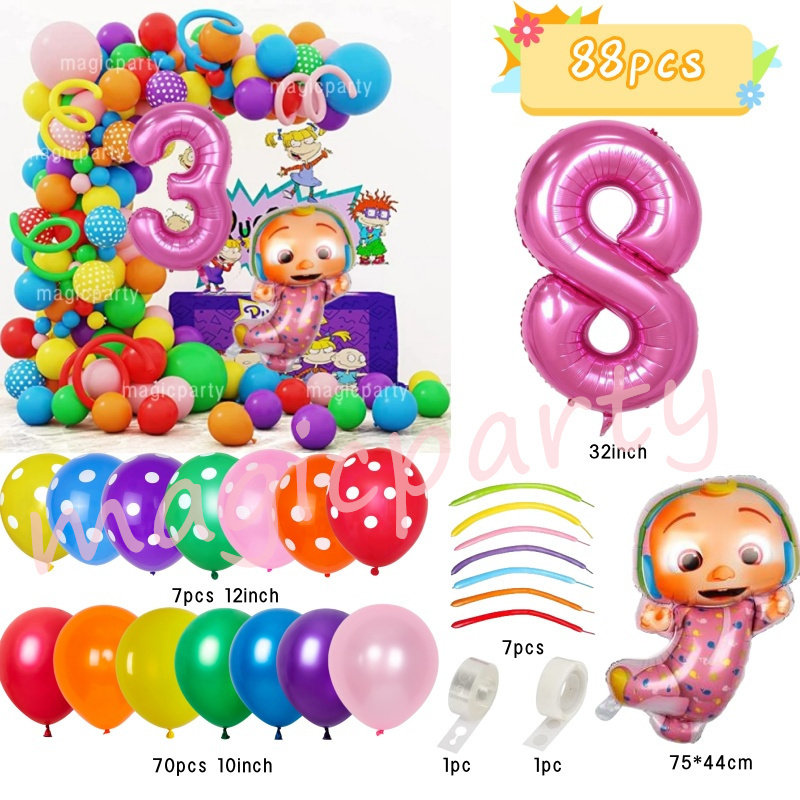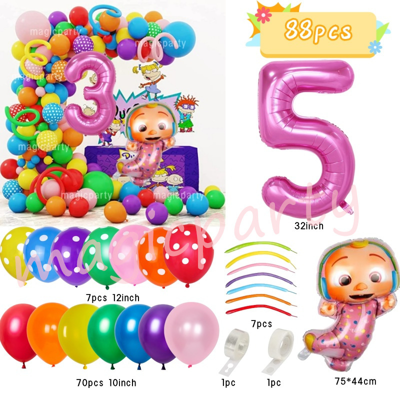 Cocomelon Balloons Wave Point Balloon JOJO Balloons 32inch Number Balloons Birthday Decoration Set Girls Birthday Party Needs