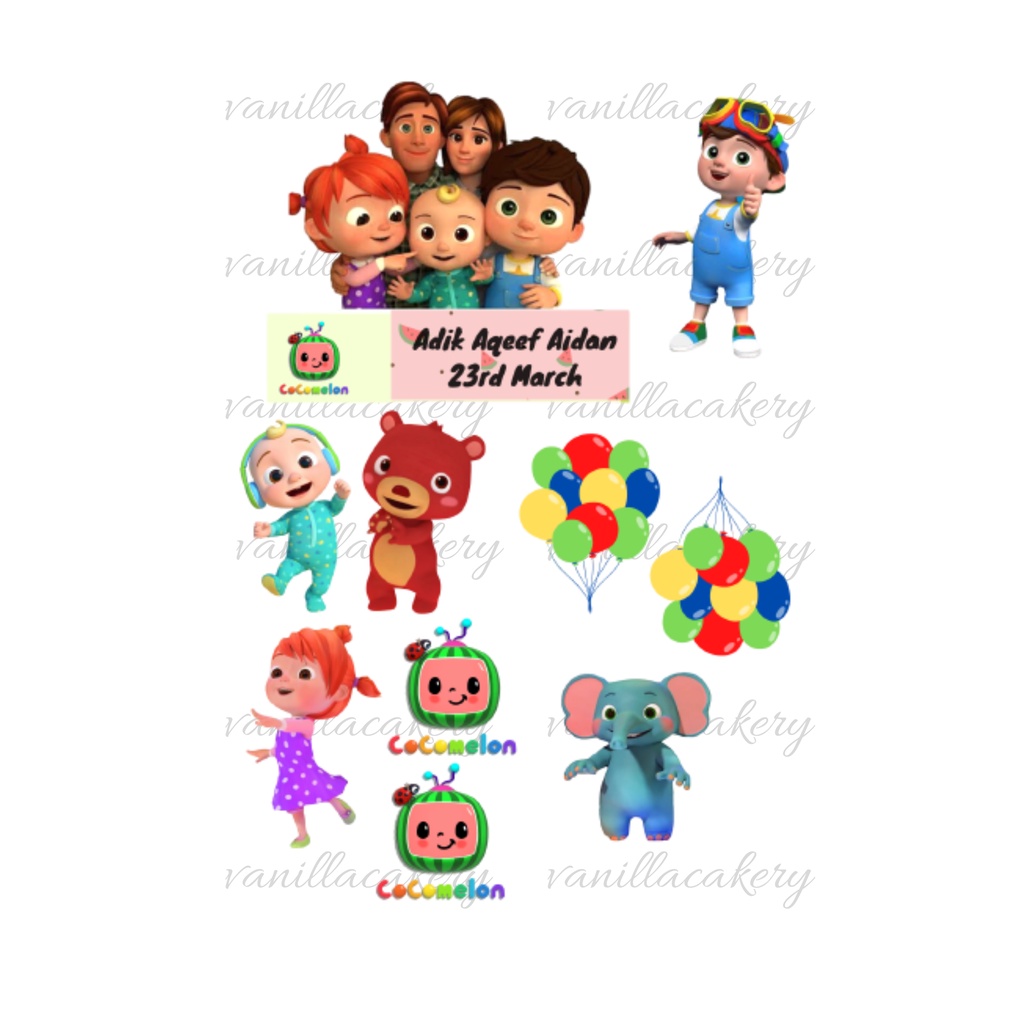 topper kek cocomelon / cocomelon kartun/ topper birthday/topper kek harijadi cocomelon