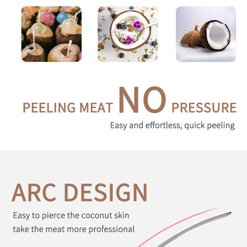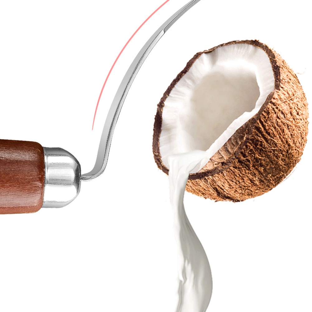 Coconut Tool Stainless Steel Coconut Meat Removal Durable Wooden Handle Coconut Opener For Kitchen Coconut Meat Remover