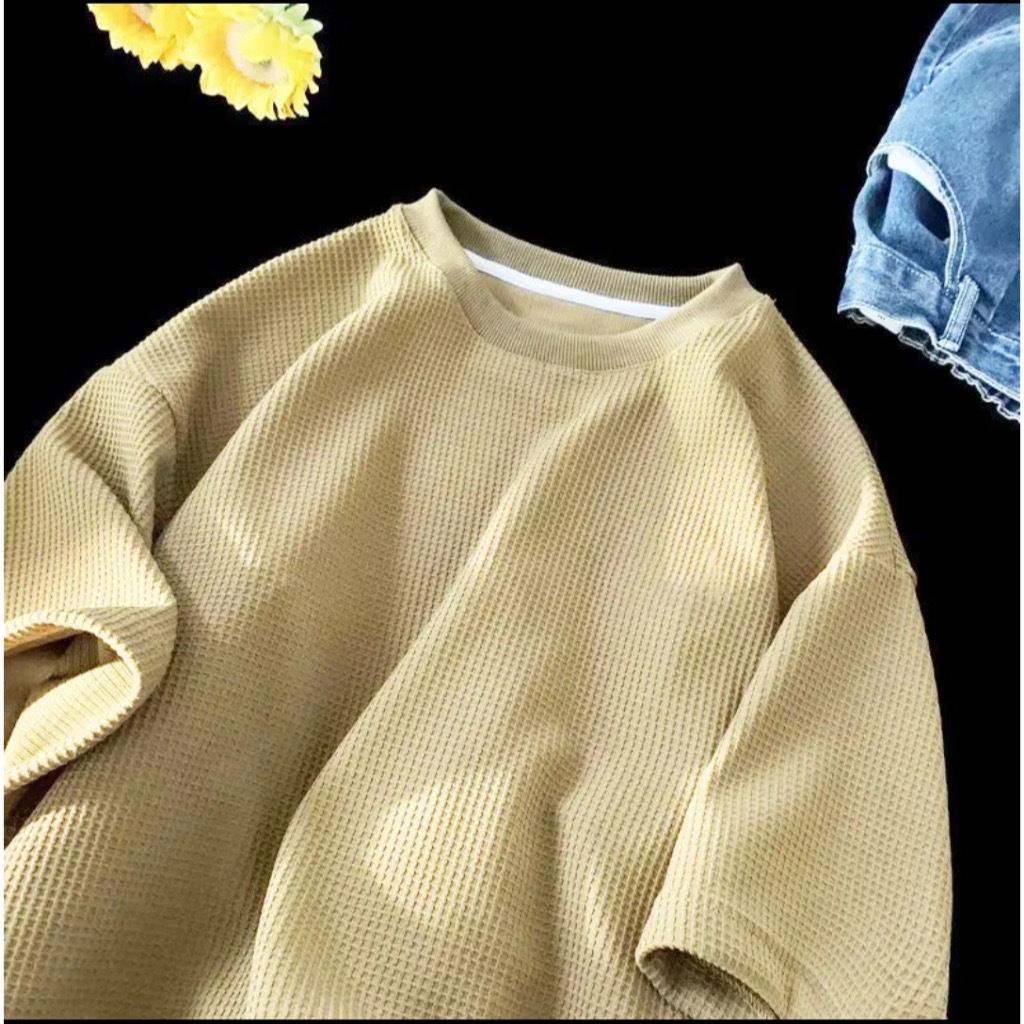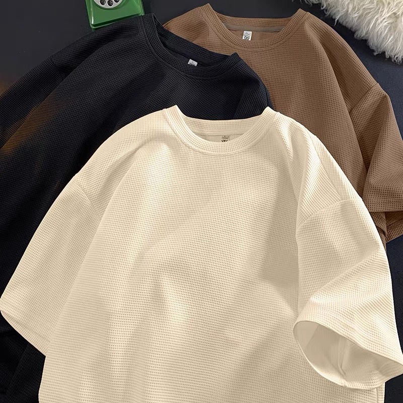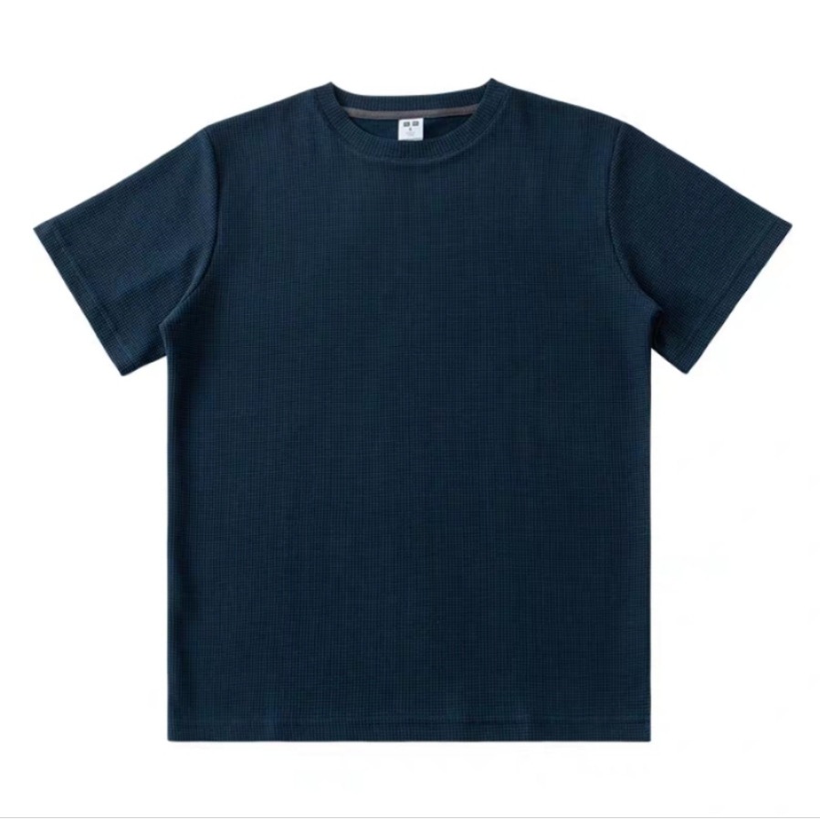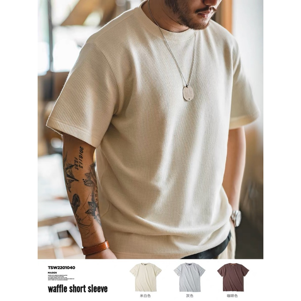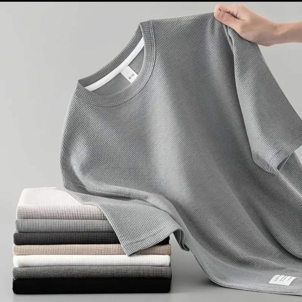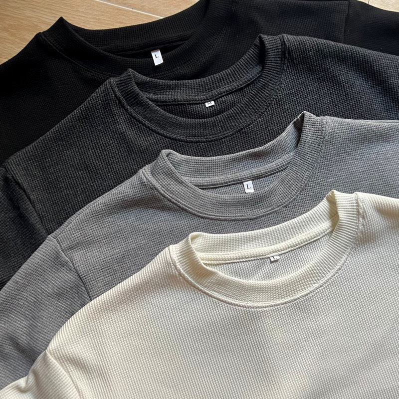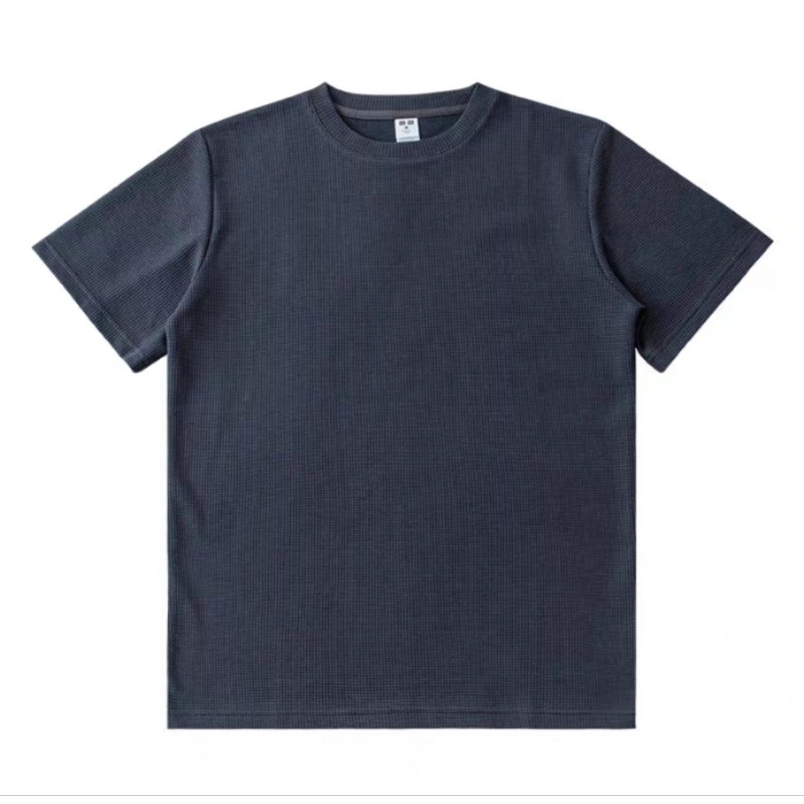 Cod New waffle shirt men - Fresh Release Round Neck Waffle Knit Shirt