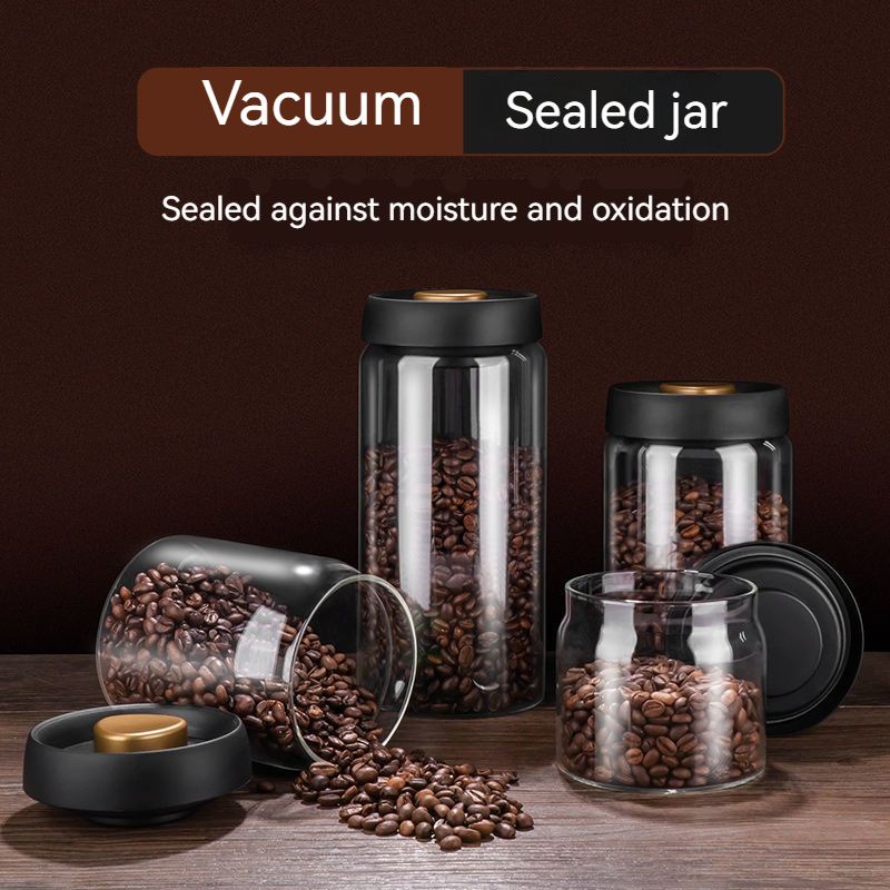 Coffee Bean Storage Container Glass Vacuum Jar Sealed Nordic Kitchen Storage Snack Tea Milk Powder Container Storage Kitchen Coffee Bean Powder Airtight Food Storage Air Extraction