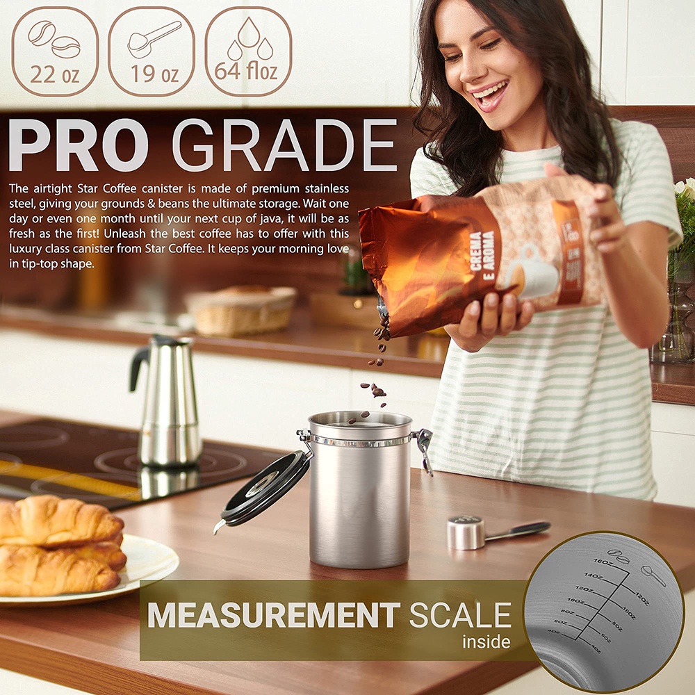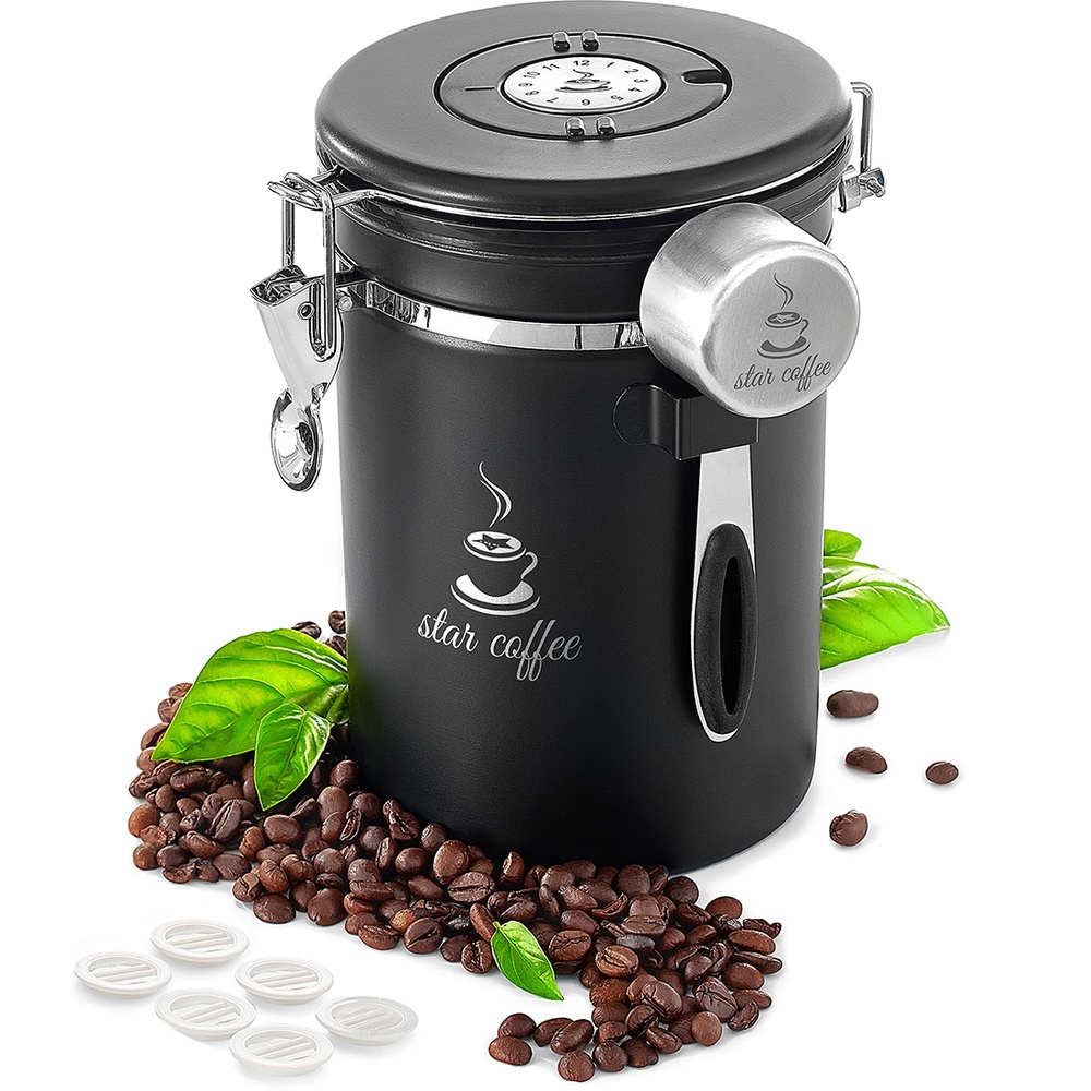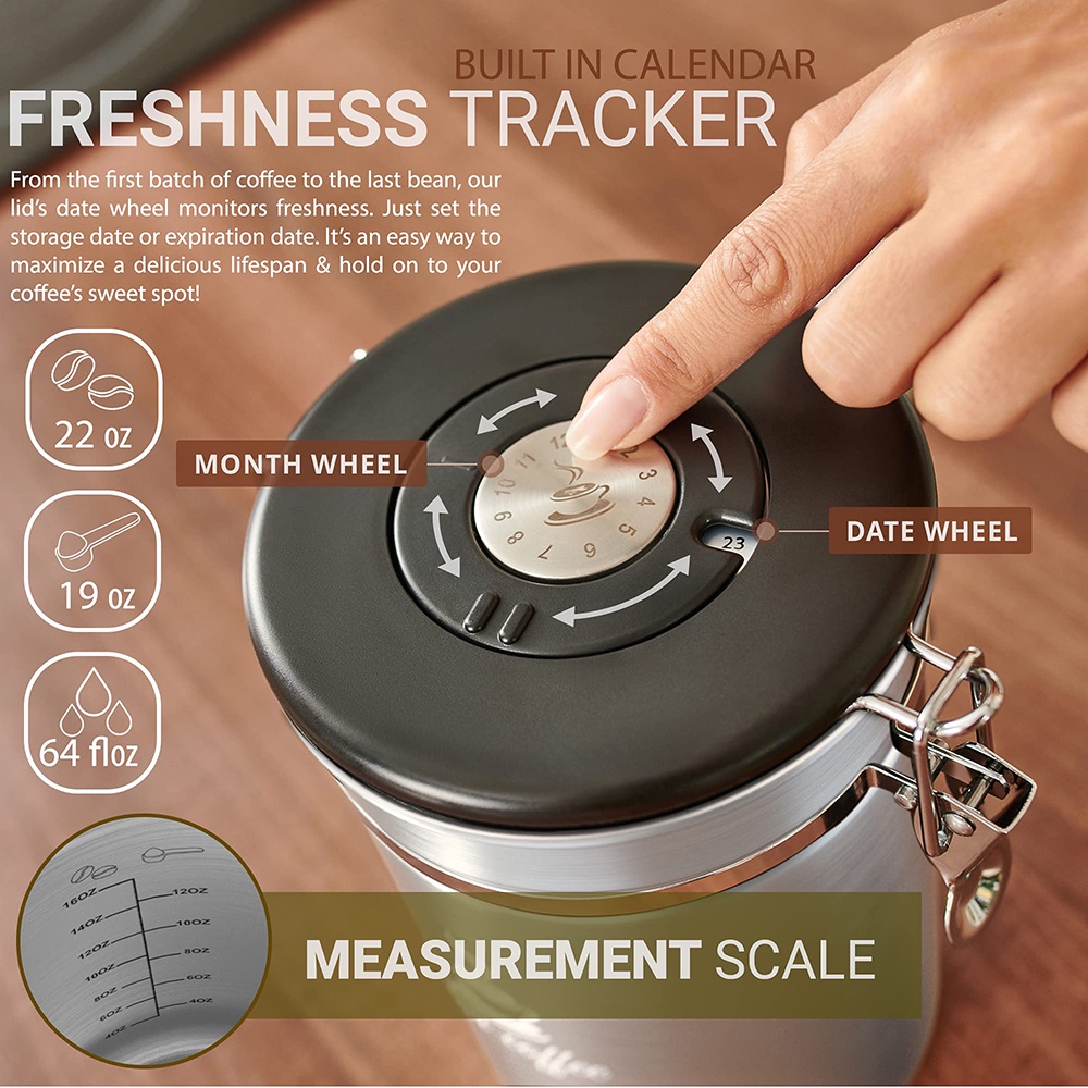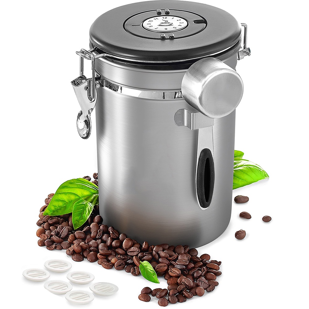 Coffee Canister Airtight Coffee Container - Stainless Steel Coffee Storage for Beans, Grounds, Tea, Sugar - Coffee Containers with Date Tracker, Scoop, CO2 Valve Filters