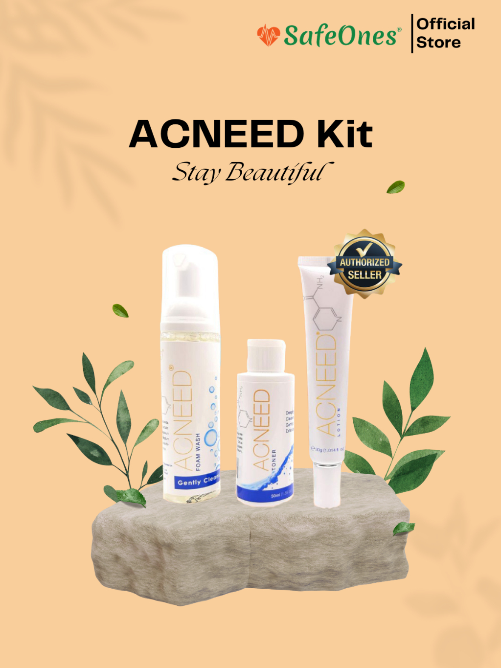 ACNEED - Kit 3's| Foam Wash 80ml | Toner 50ml | Bar 90g | Lotion 30g