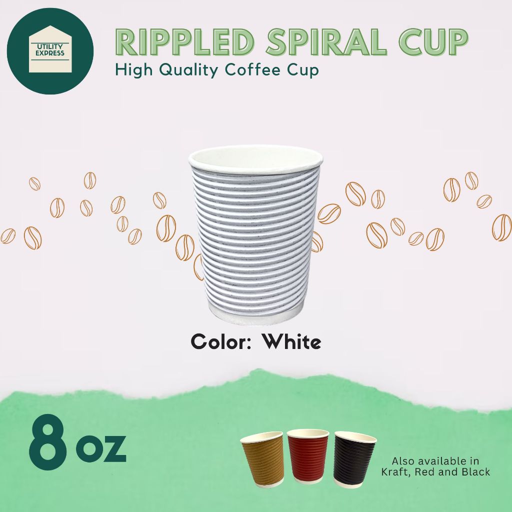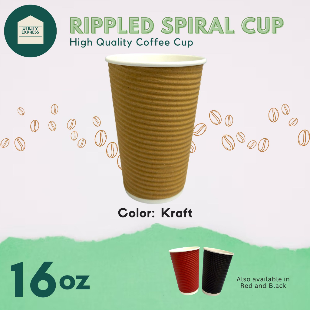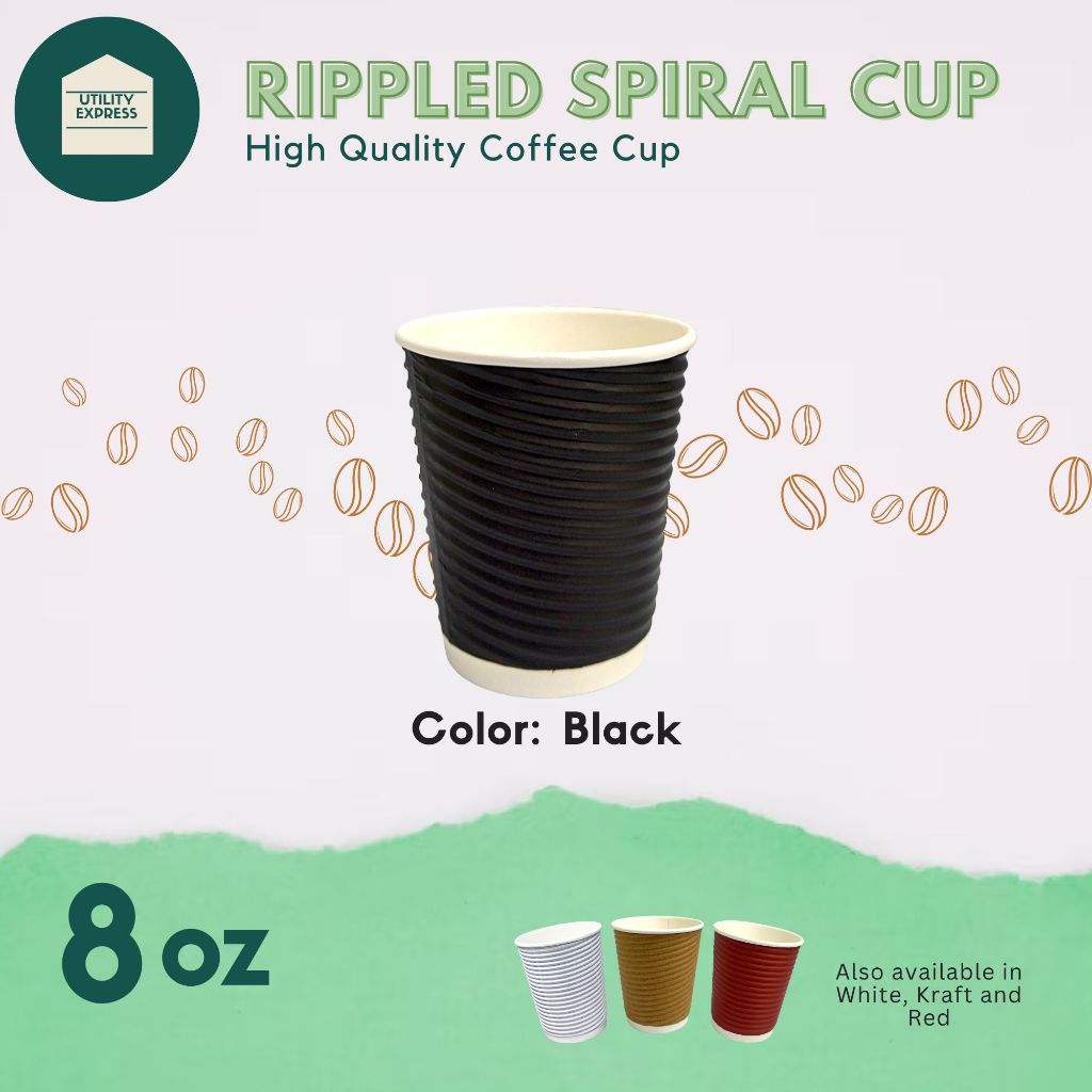 Coffee Cup - Rippled Cups [8oz | 12oz | 16oz] (25pcs) With or w/out lid - Black Kraft Gray Red White