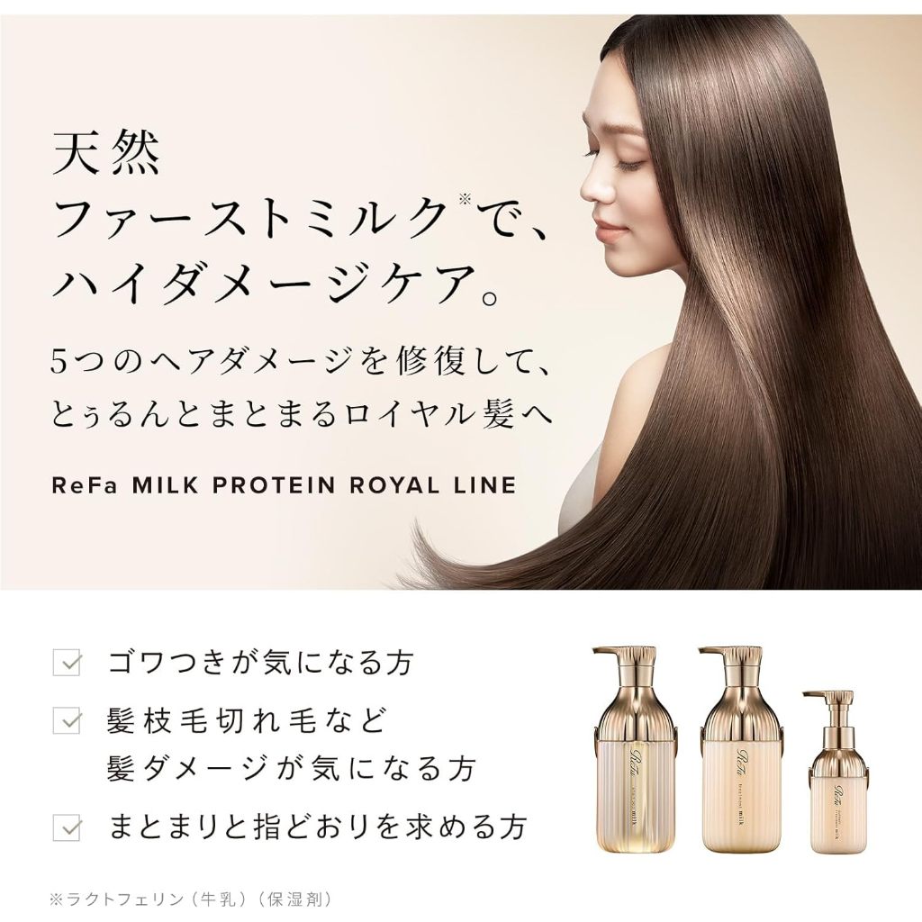 ReFa MILK PROTEIN ROYAL SHAMPOO 500mL/ TREATMENT 500g/ OUTBATH TREATMENT 100g