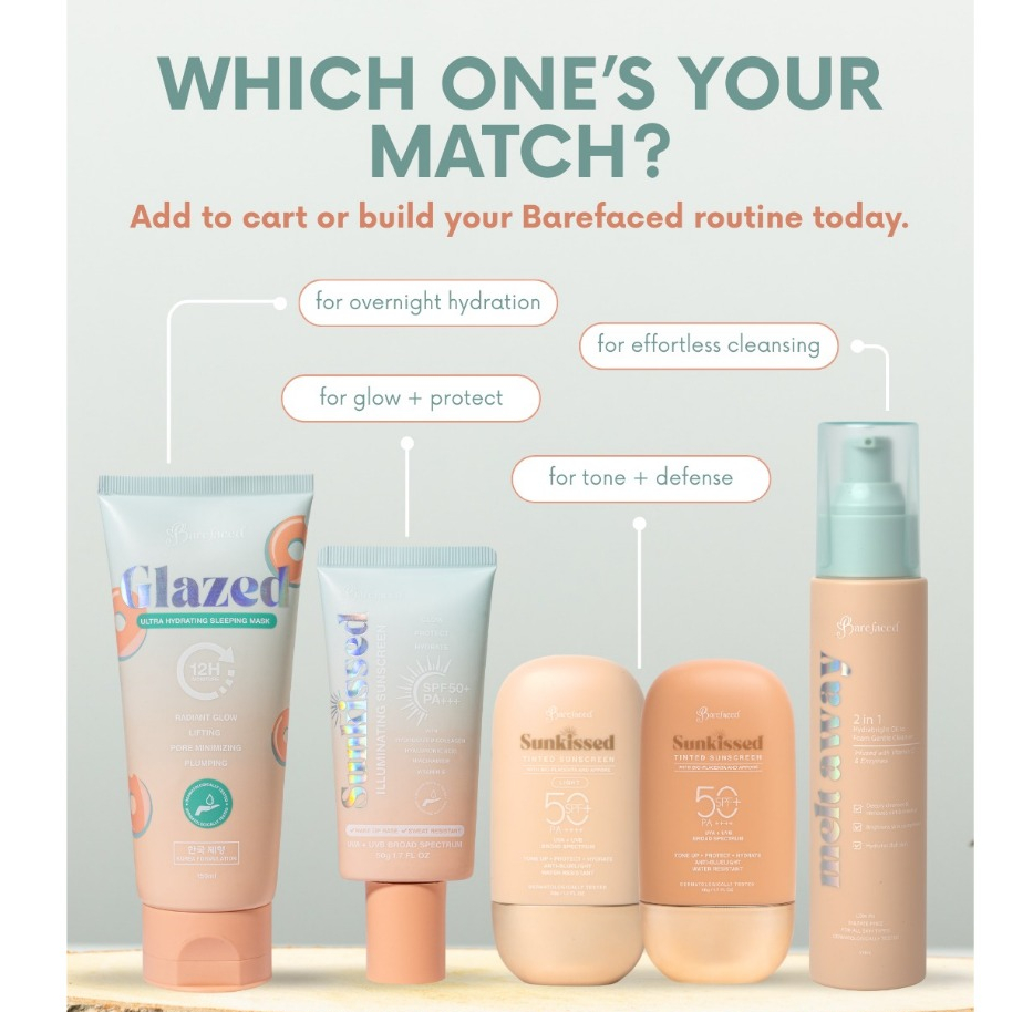 BAREFACED Sunkissed Tinted Illuminating Sunscreen Glazed Hydrating Mask Melt Away Foam Cleanser