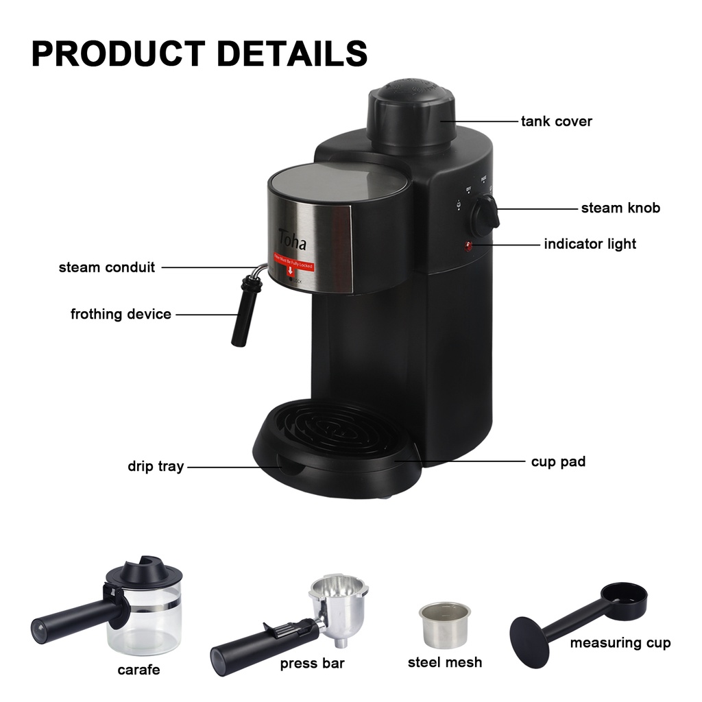 Coffee Maker Toha easy to use espresso coffee maker with frothing milk coffee machine maker