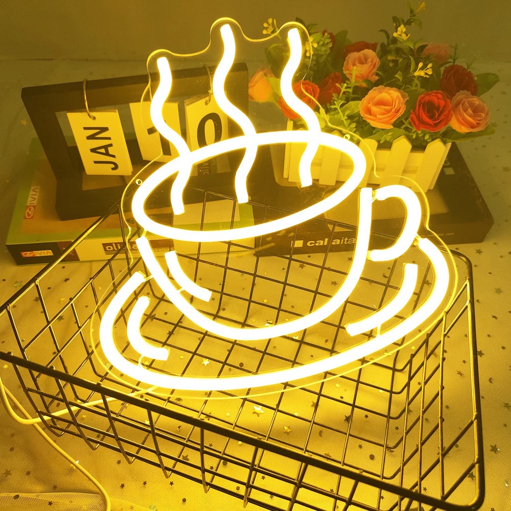 Coffee Neon Sign Custom Neon Sign Wall Decor Coffee Cup Signs for Shops Hotels Restaurant Cafe Coffee Bar Shop Nigh Light