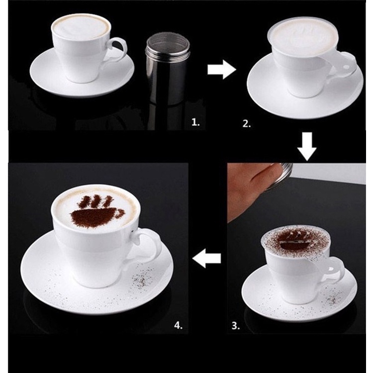 Coffee Powder Shaker with Lid Stainless Steel Fine Mesh Shaker Cinnamon Icing Sugar Powder Cocoa Flour Chocolate Coffee Sifter Sprinkler Dredgers for Coffee Cappuccino Latte