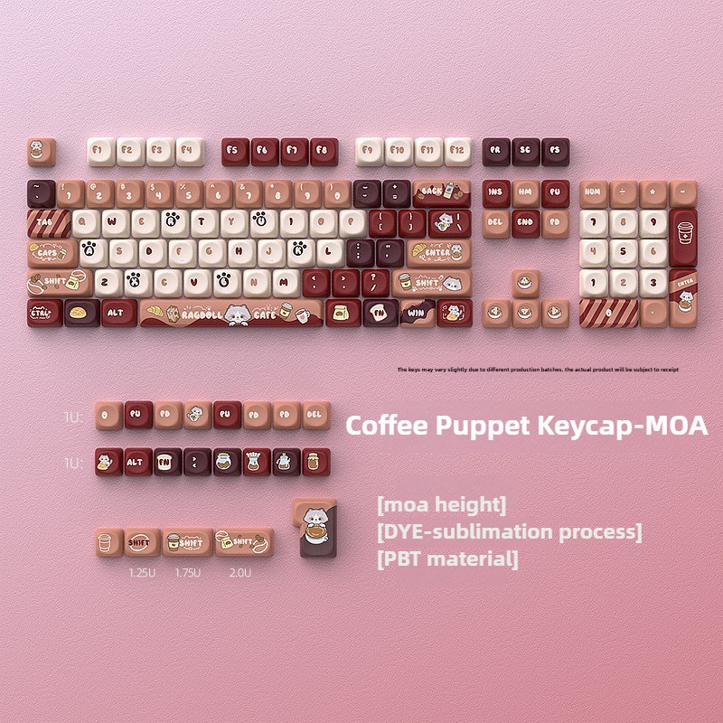 Coffee Puppet Keycap MOA Profile DYE-Sublimation PBT Material 131 Key Small Complete Set for Mechanical Keyboard Customization